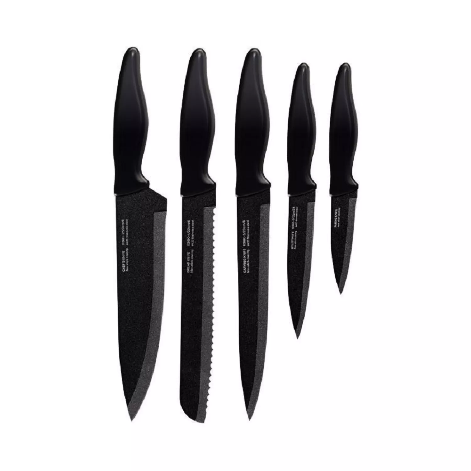Набор ножей mpm sns-2, 6 предметов, 9.5, 13, 20, 20, 20 см, нержавеющая сталь, акрил, черный