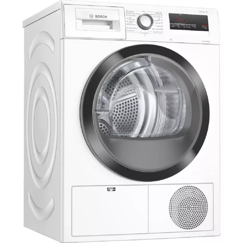 Сушильная машина bosch wth85204ua, полноразмерная, 8 кг, конденсационная, 15 программ, белый, a++