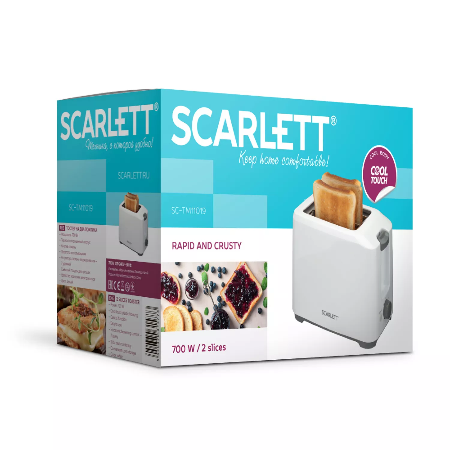 Характеристики для Тостер SCARLETT TM11019, 700 Вт, 7 степеней обжарки, Белый