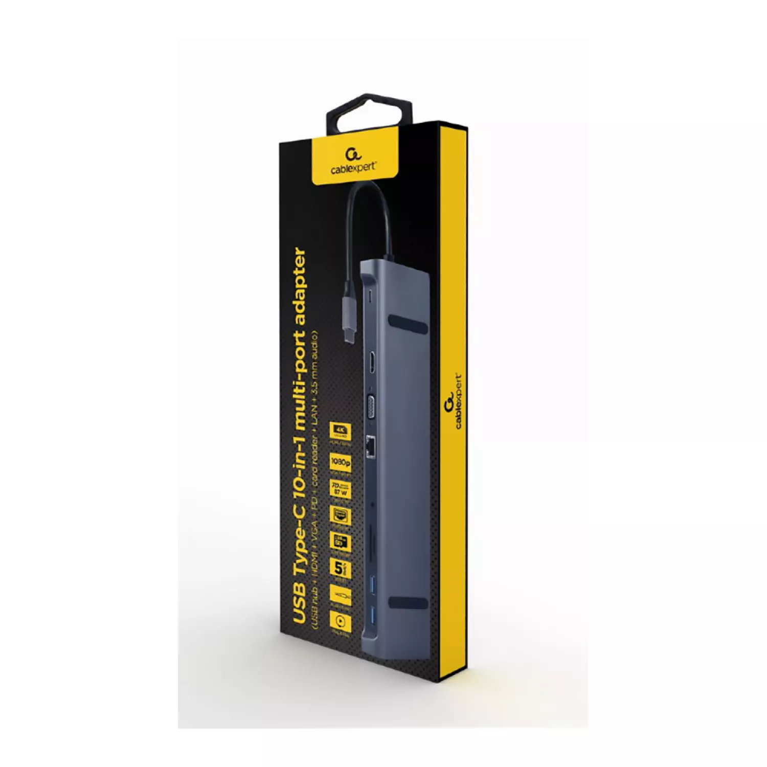 Док-станция gembird a-cm-combo10-01, 3xusb 3.1, type-c, lan, hdmi, vga, sd/microsd, 3.5mm,pd 87w