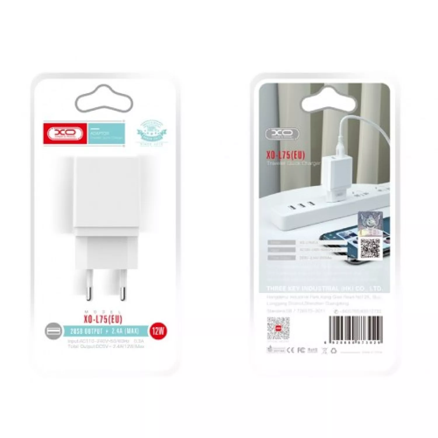WALL CHARGER + LIGHTNING CABLE, 2USB, 2.4A, WHITEINPUT : 100-240V ~50/60HZ MAX0.6A OUTPUT: 5.0V-2.0A STANDARD USB INTERFACE - PLUG AND USE