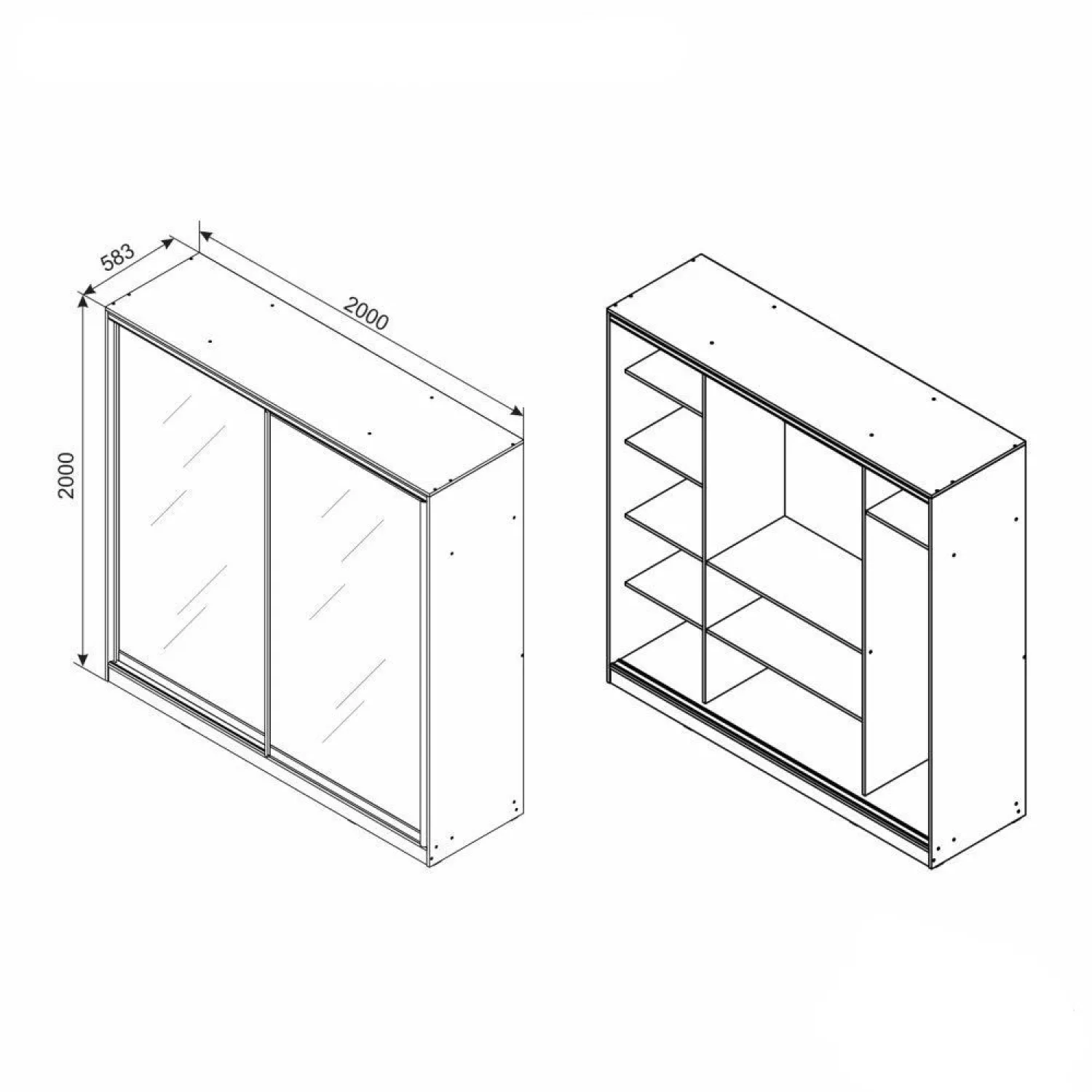 Характеристики для Шкаф-купе Ambianta HAPPY 2.0 m, ЛДСП, Графит, 200x200x58.3