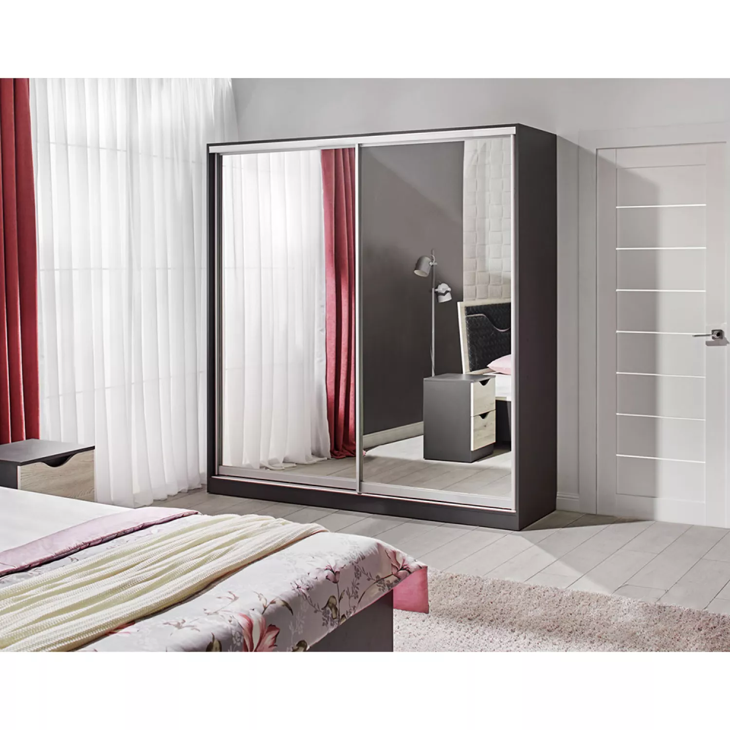 Шкаф-купе ambianta happy 2.0 m, лдсп, графит, 200x200x58.3