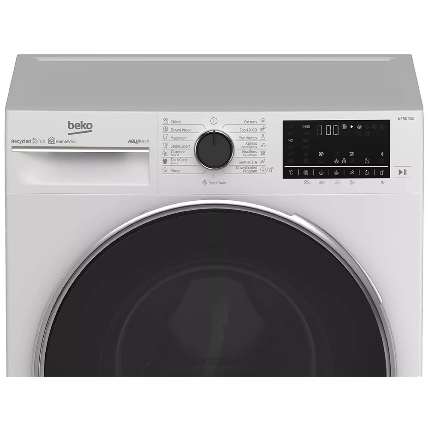 Стиральная машина beko b5wfu79418wb, полноразмерная, 9 кг, 1400 об/мин, 15 программ, белый, чёрный, a