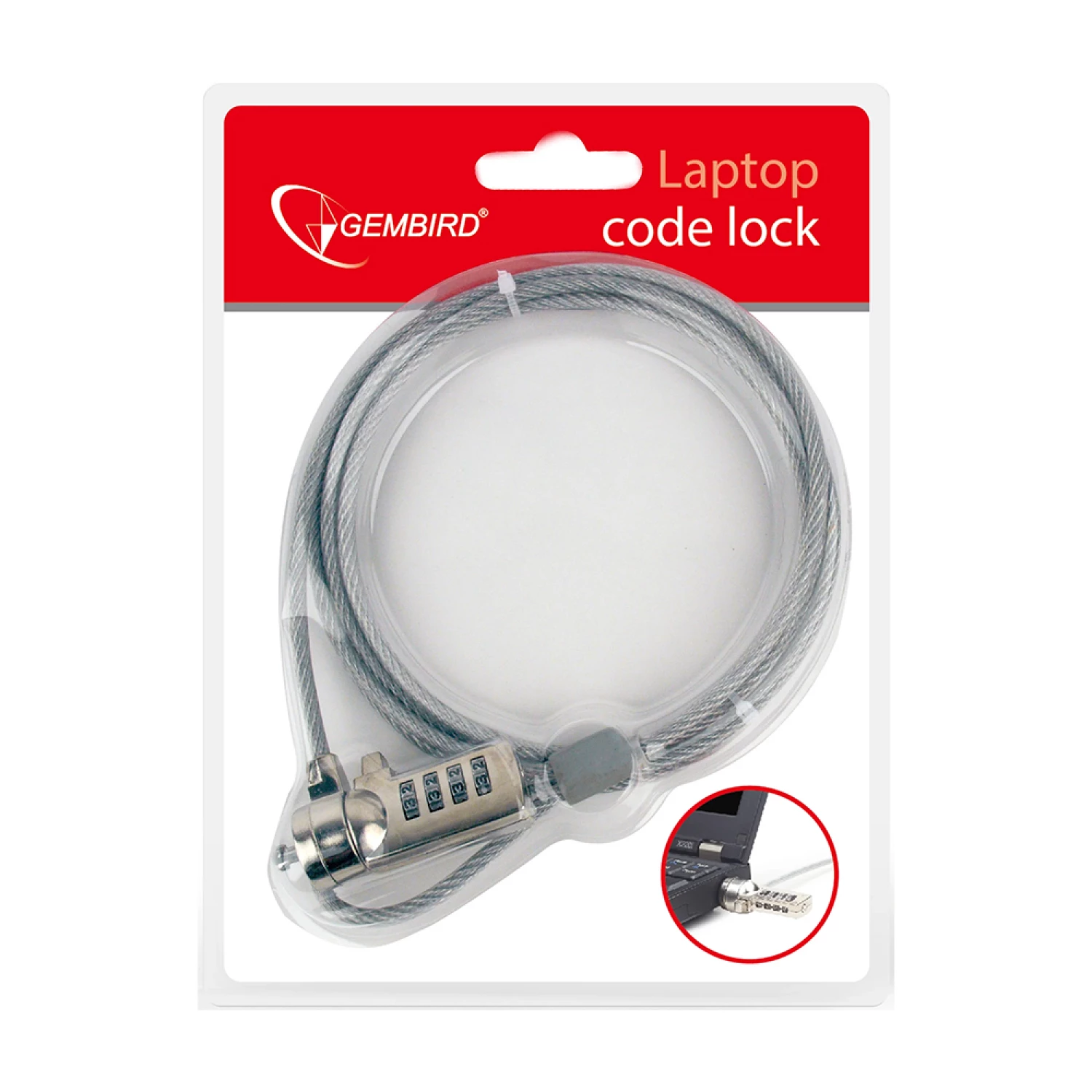 Док-станция gembird lk-cl-01 cable lock for notebooks (4-digit combination), 4 mm steel cable