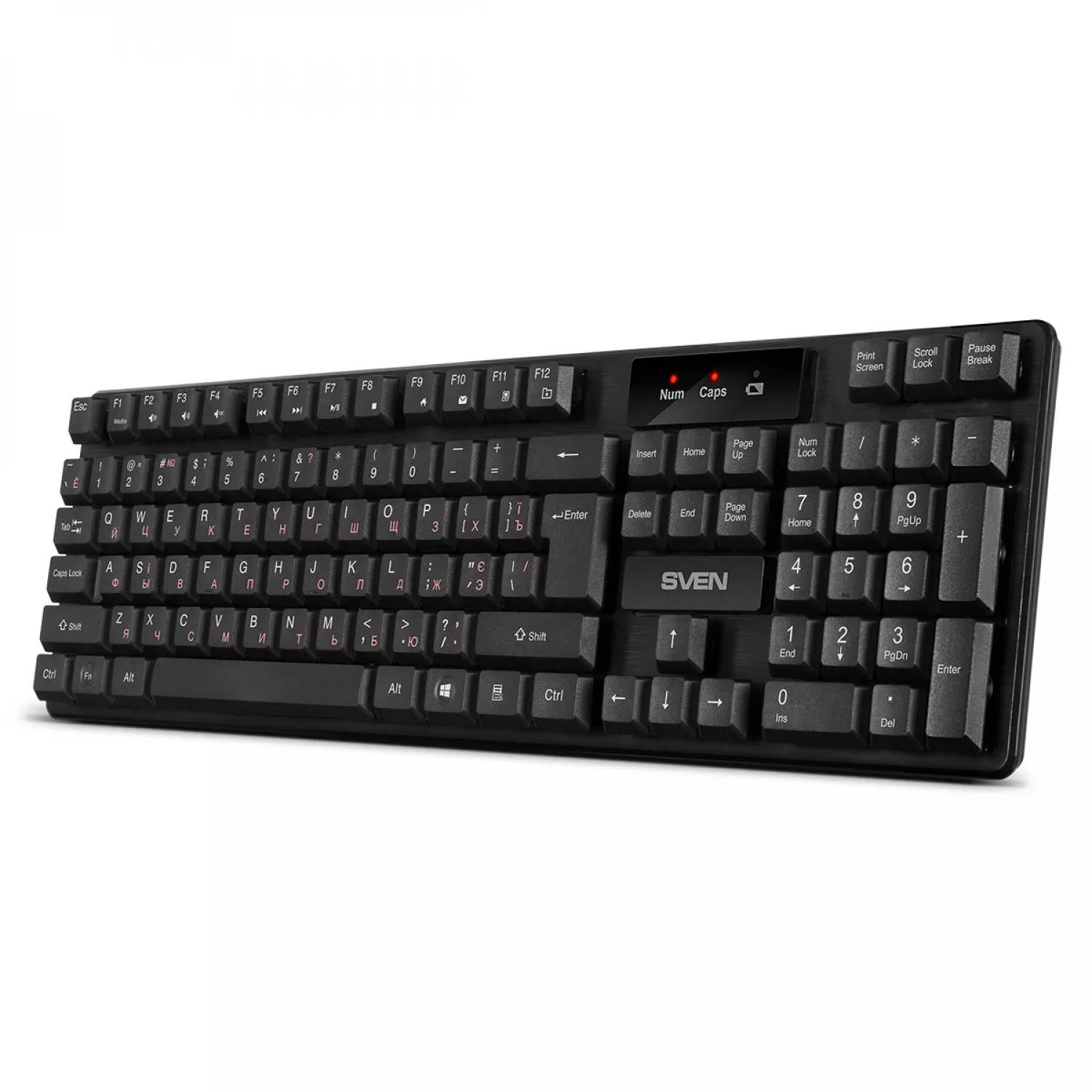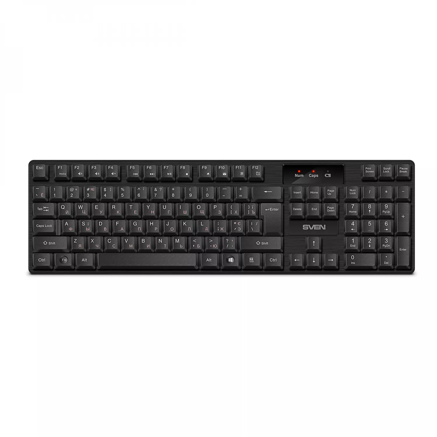 Характеристики для Клавиатура беспроводная SVEN KB-C2300W, 12 Fn keys, Splash proof, Battery indicator, 2.4Ghz, 2xAA, Black