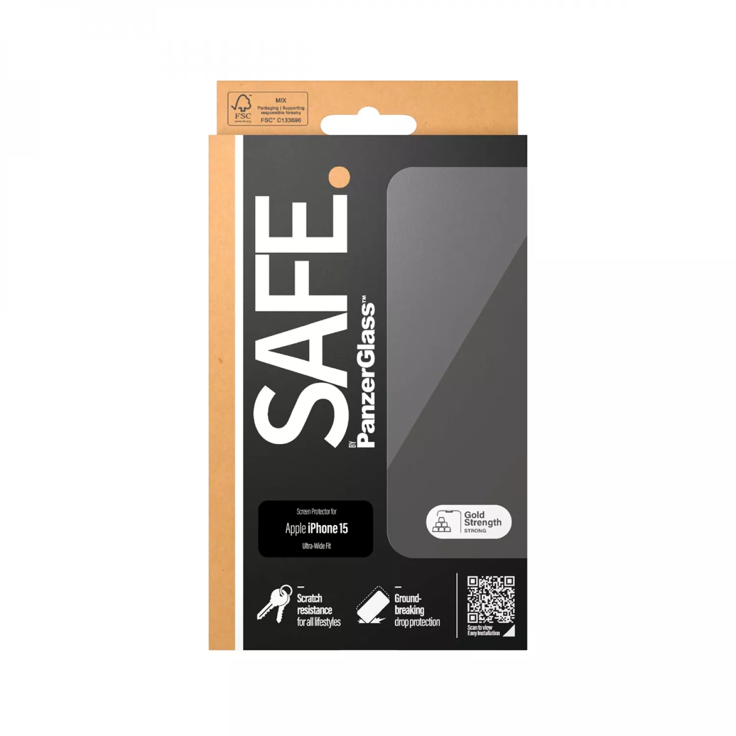 Защитное стекло panzerglass safe apple iphone 15, ultra-wide fit, tempered glass, transparent