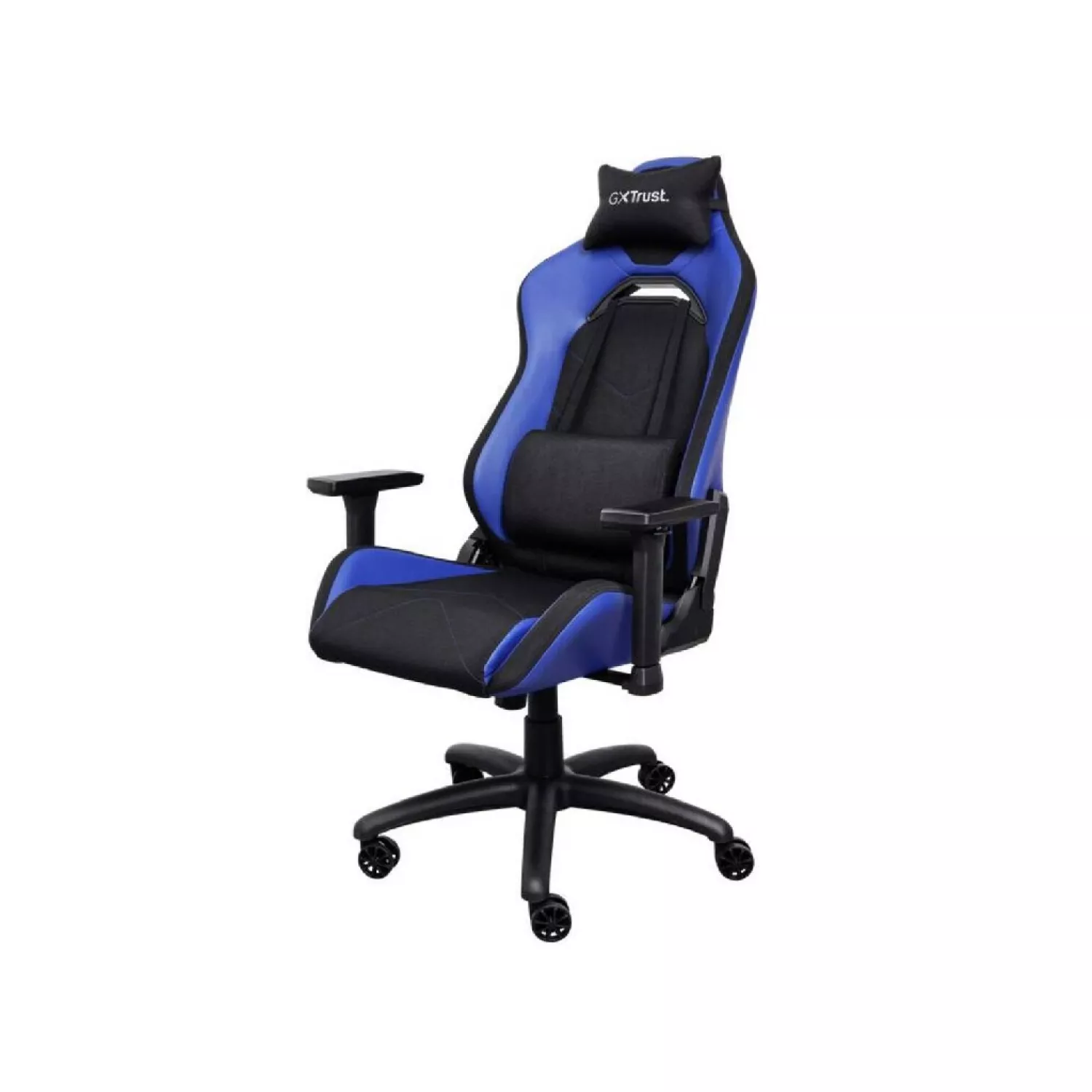 Игровое геймерское кресло trust gxt 714b ruya - black/blue, pu leather, 3d armrests, class 4 gas lift, 90°-180° adjustable backrest, strong and robust metal base frame, including removable and adjustable lumbar and neck cushion, durable double wheels, up to 195 c