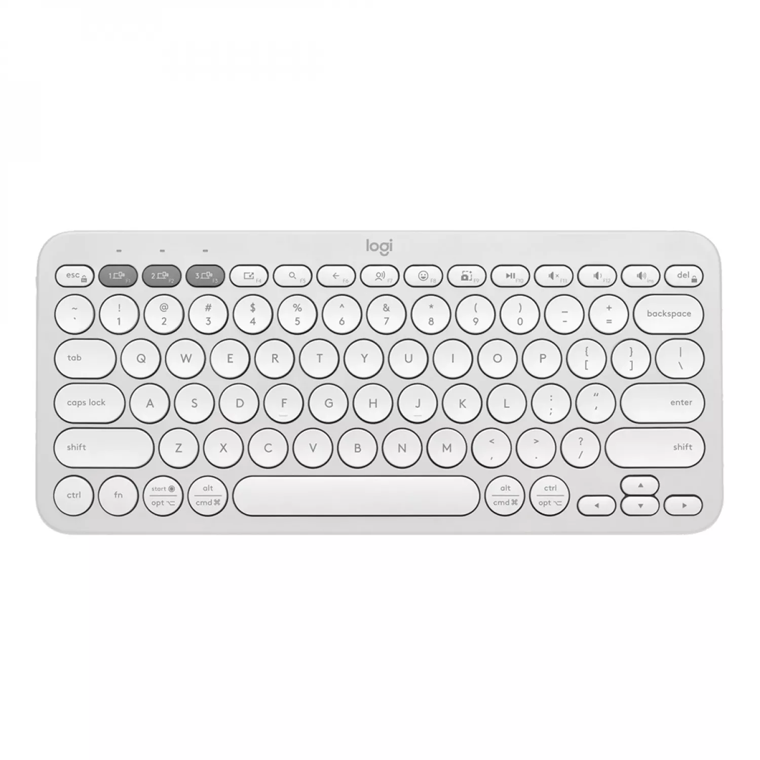 PEBBLE KEYS 2 K380S, COMPACT, LOW-PROFILE, FN KEYS, MULTI-DEVICE, QUIET TYPING, 2XAAA, BT/2.4GHZ, EN, WHITE. |