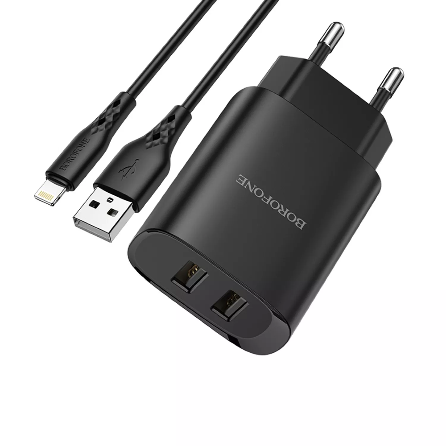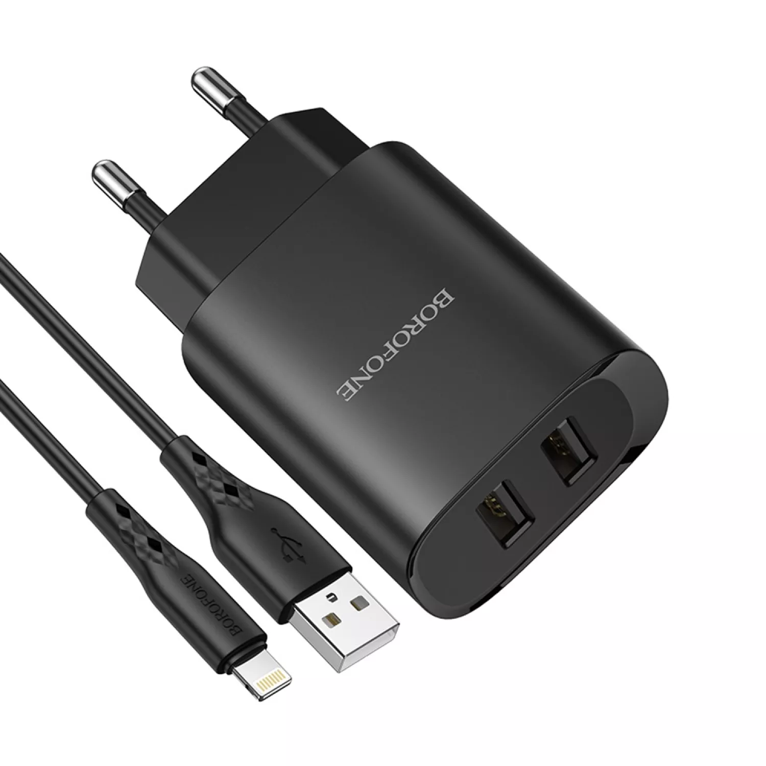 Incarcator Borofone Wall Charger with Сable USB to Lightning BN2 2xUSB 2.1A, BlackIncarcator Borofone Wall Charger with Сable USB to Lightning BN2 2xUSB 2.1A, BlackIncarcator Borofone Wall Charger with Сable USB to Lightning BN2 2xUSB 2.1A, Black