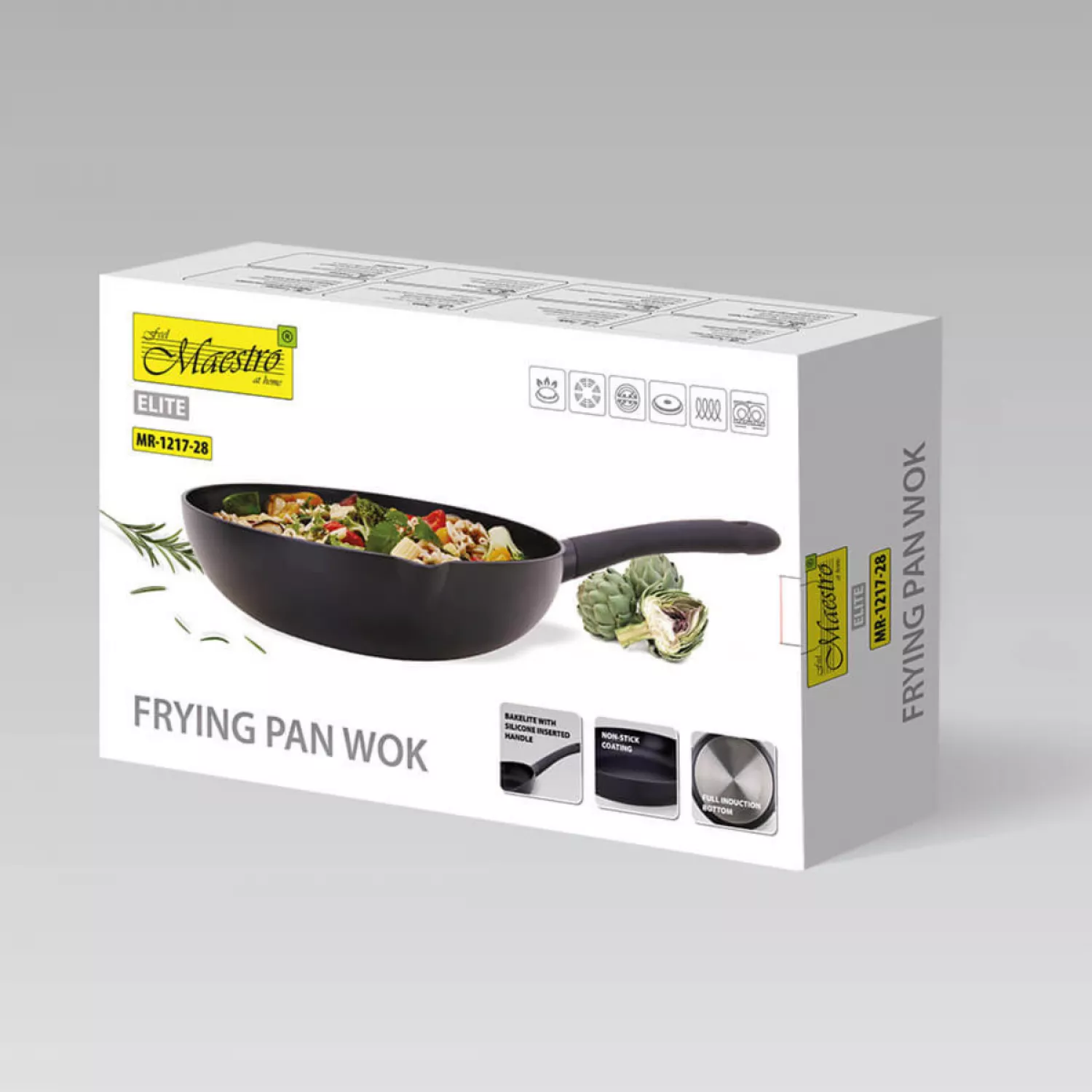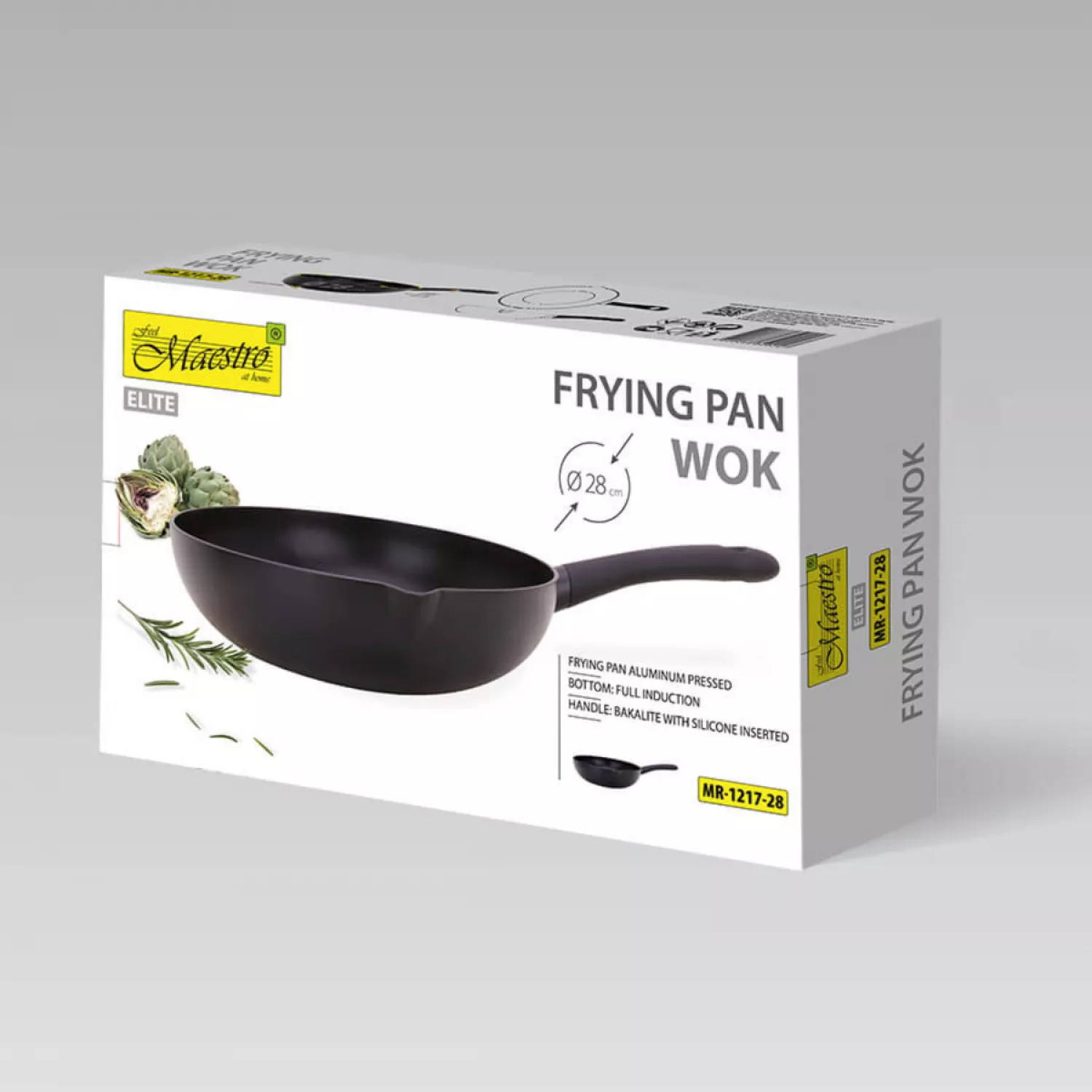 Характеристики для Сковорода Wok Maestro Mr-1217-28, 28 см, Алюминий, Черный