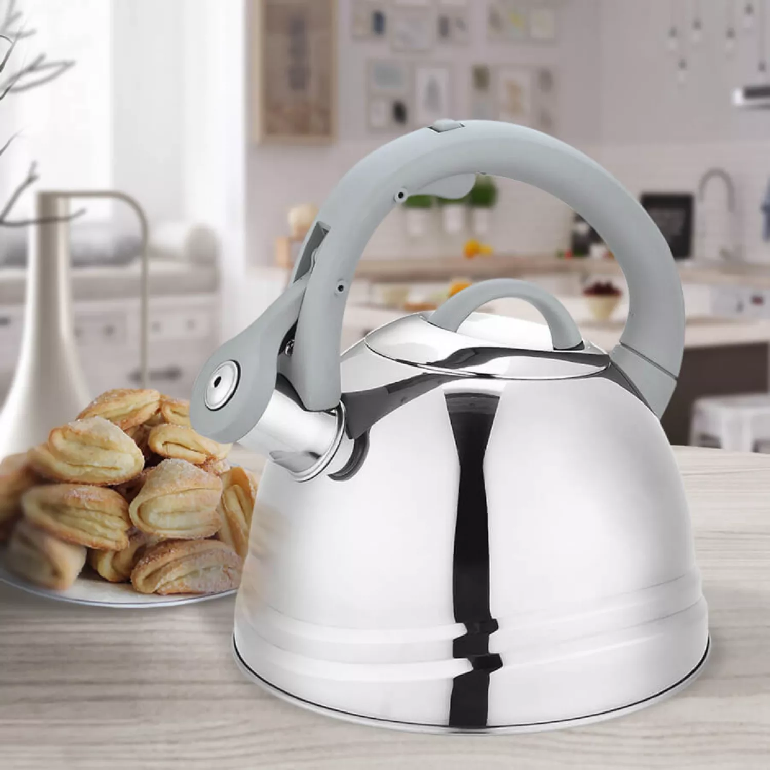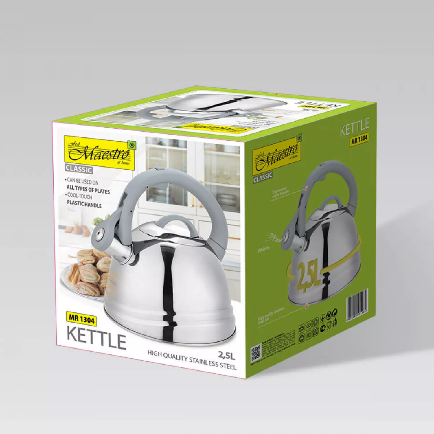 Чайник со свистком maestro mr-1304, 2.5 л, нержавеющая сталь, серый