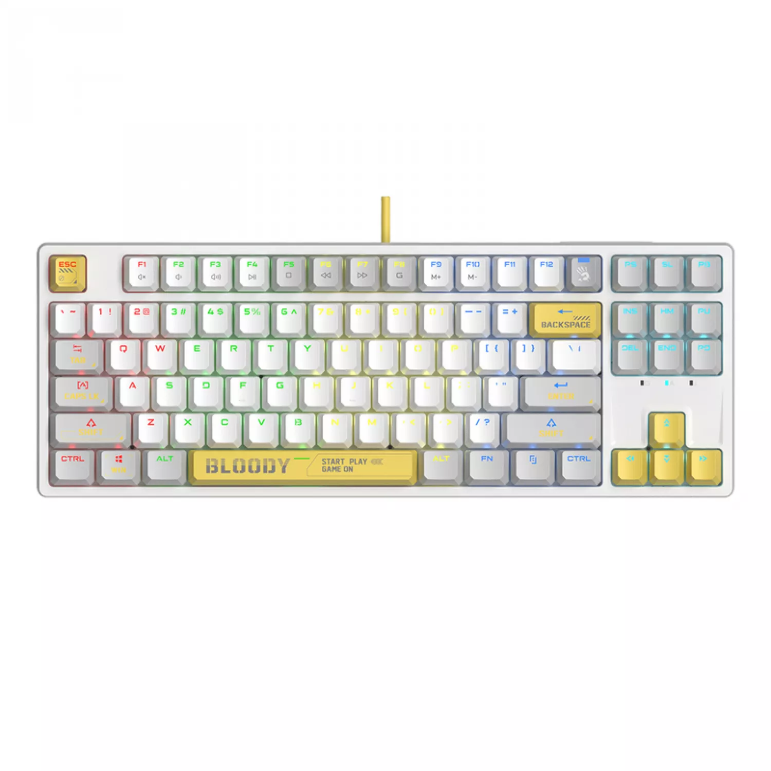 Игровая клавиатура bloody s87, energy white, n-key rollover, rgb, 1.8m, usb, en/ru
