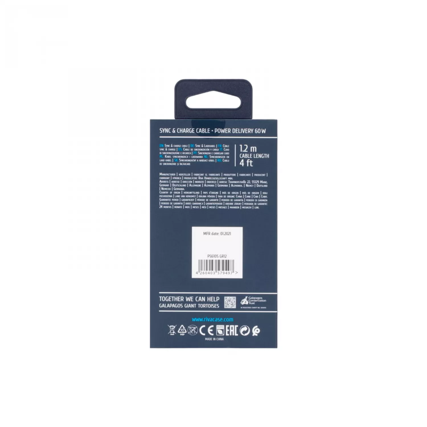 Характеристики для Кабель Rivacase Type-C to Type-C PS6105 GR12, nylon braided, 1.2M, Gray