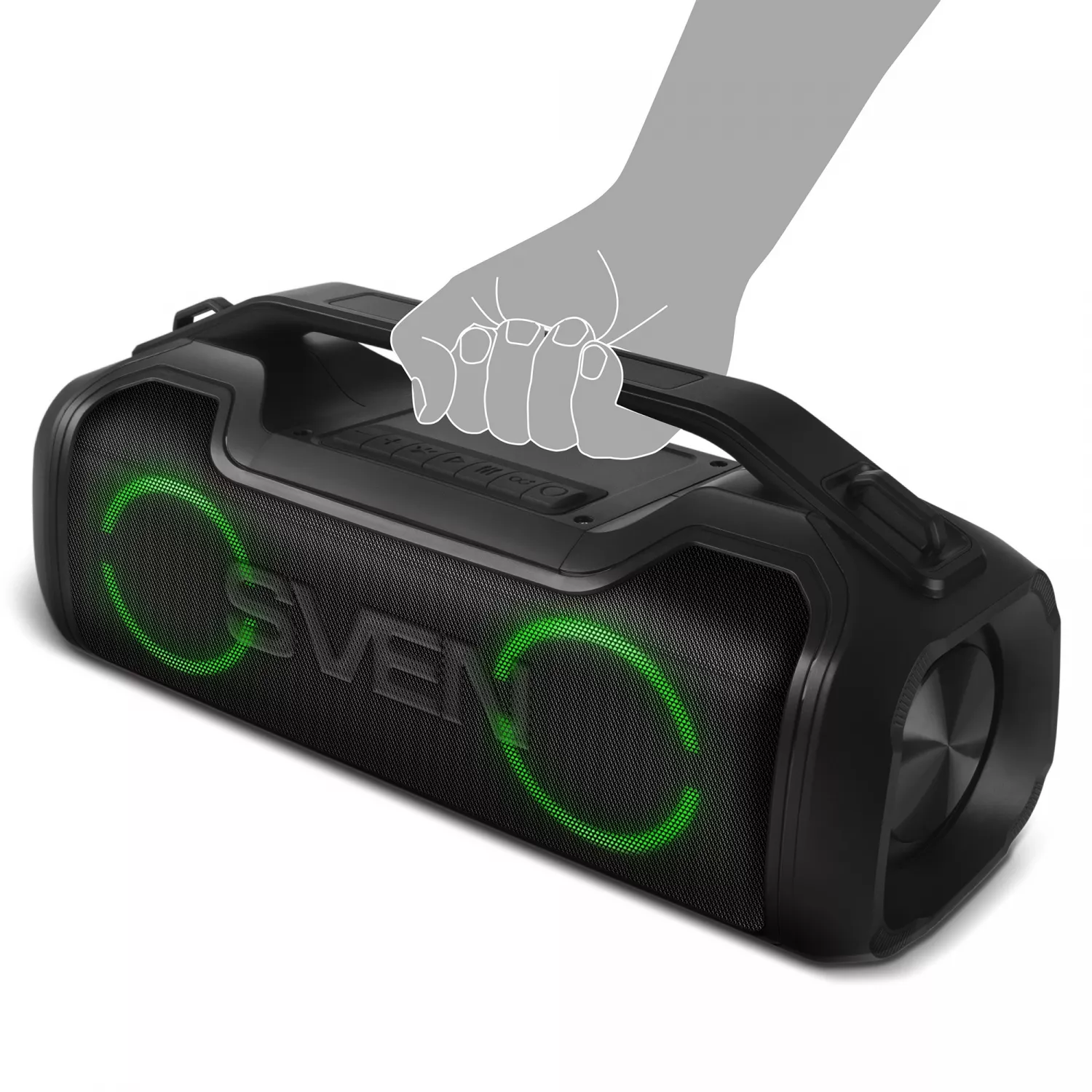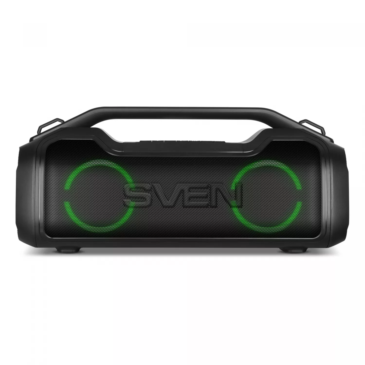 # 362977 Колонка SVEN SVEN PS-390 Black, Bluetooth Portable Speaker, Waterproof (IPx5), Dynamic switchable RGB backlight, 50W RMS, MicroSD, FM tuner, USB Type-C, TWS, built-in lithium battery - 3600 mAh, Power Bank function, AUX stereo input