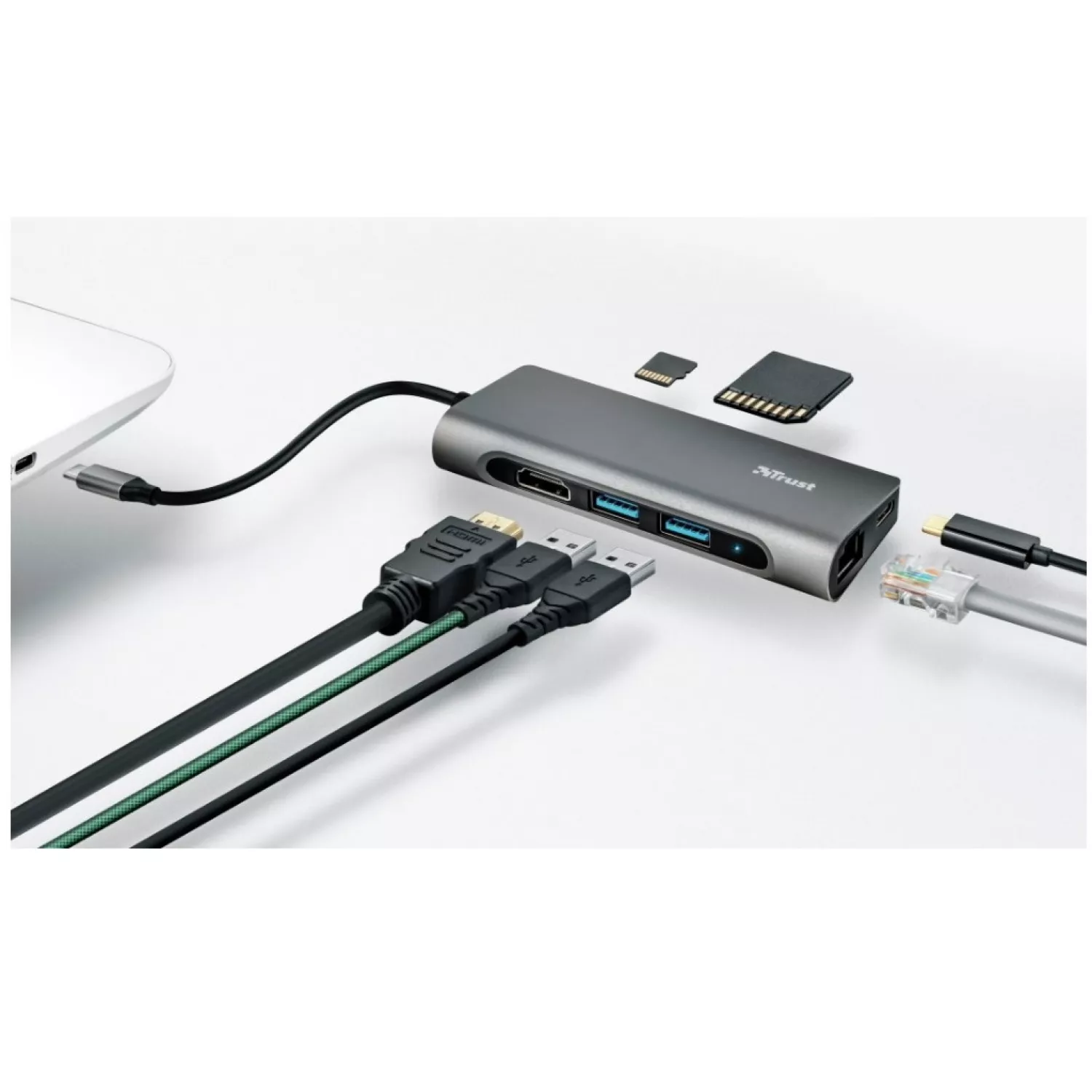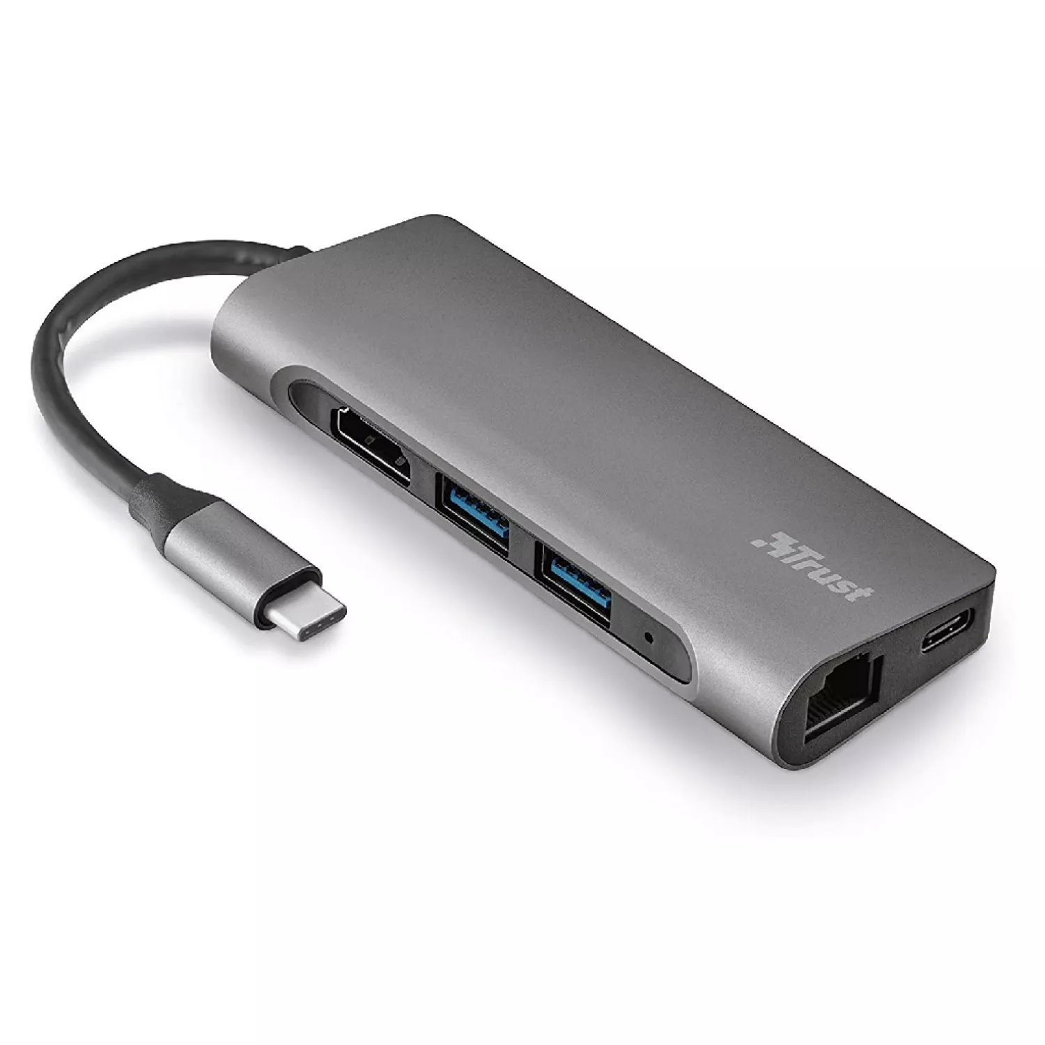 Док-станция trust dalyx 7-in-1 usb-c multiport adapter, hdmi 1.4 (4k 30hz), network port with support for fast gigabit ethernet, usb-c, 2 x usb-a, sd, microsd, 57g