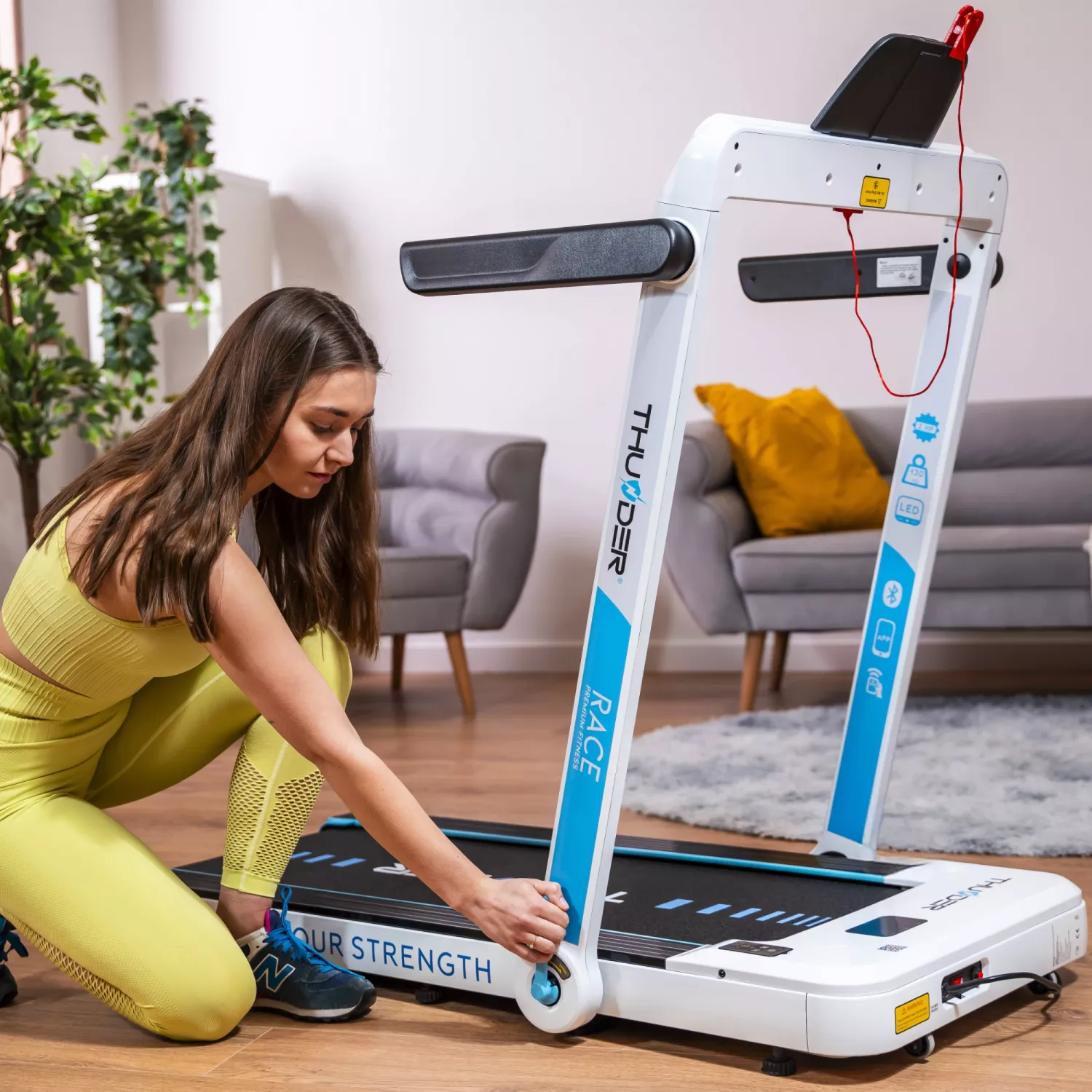Характеристики для Беговая дорожка THUNDER RACE, White, Viteza maxima 14km/h, maxima suportata 130kg
