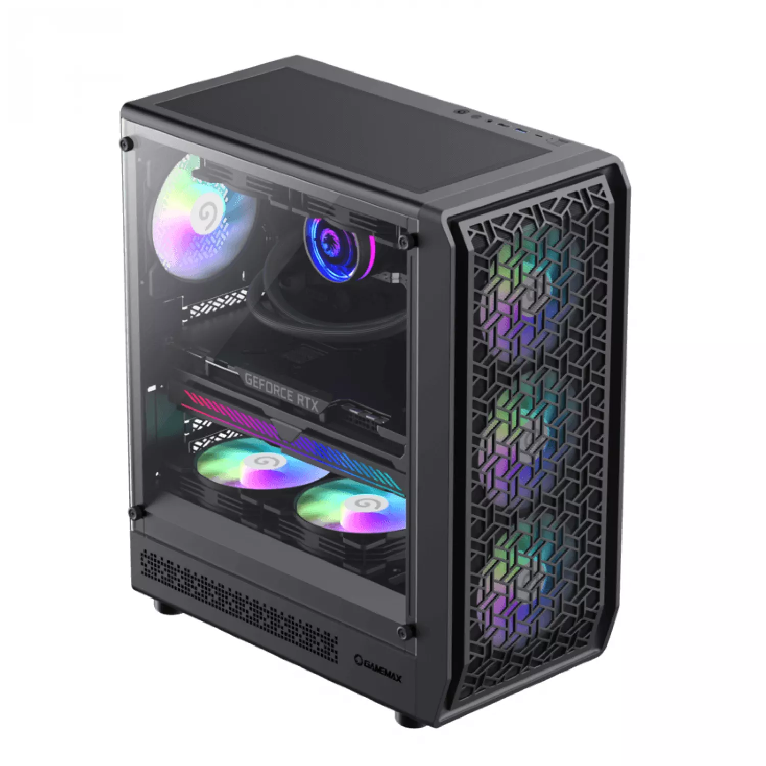 Корпус без бп gamemax case atx forge ab, w/o psu, 0.5mm, 6x120mm argb, front mesh, tempered glass, dust filter, 1xusb-c, 1xusb2.0, 1xusb3.0, 3x2.5", 2x3.5", black