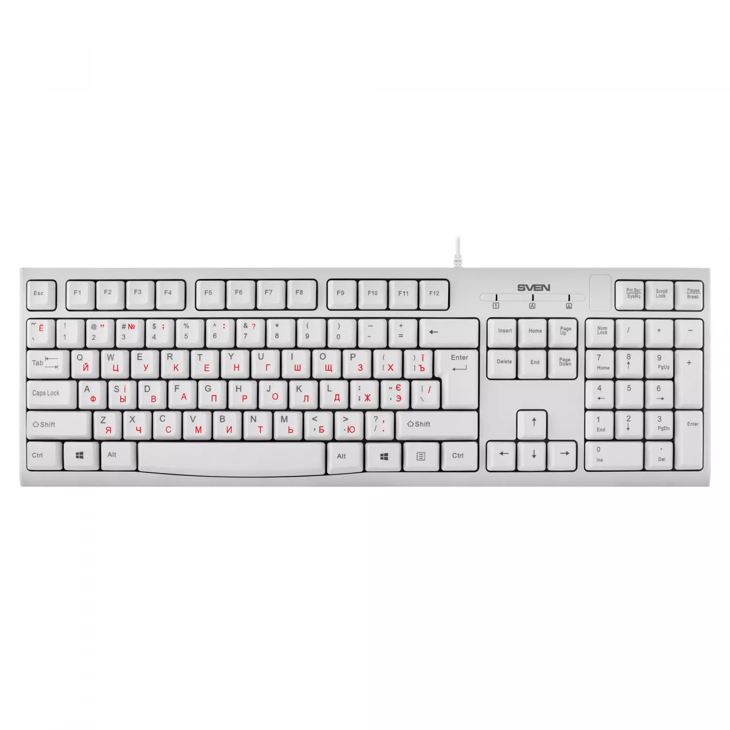 Клавиатура беспроводная sven sven kb-s300, keyboard, waterproof design, 104 keys, traditional layout, comfortable, quiet and precise keystroke, usb, os compatibility: windows, macos, linux; white, rus/ukr/eng