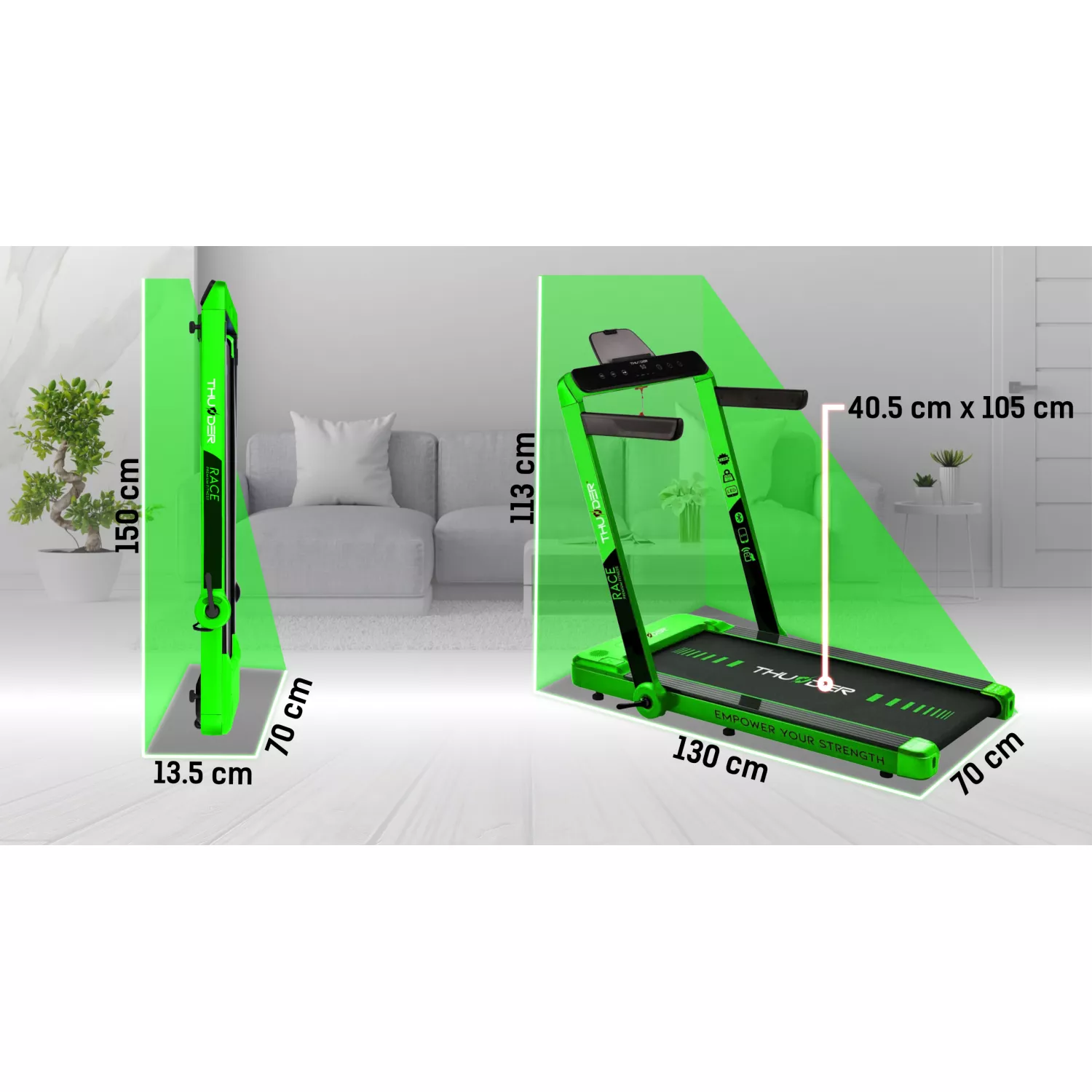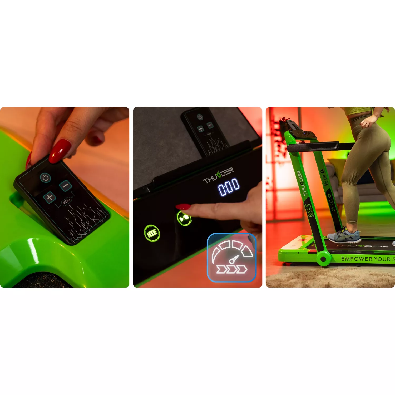 Характеристики для Беговая дорожка THUNDER electrica RACE, Green, Viteza maxima 14km/h, maxima suportata 130kg
