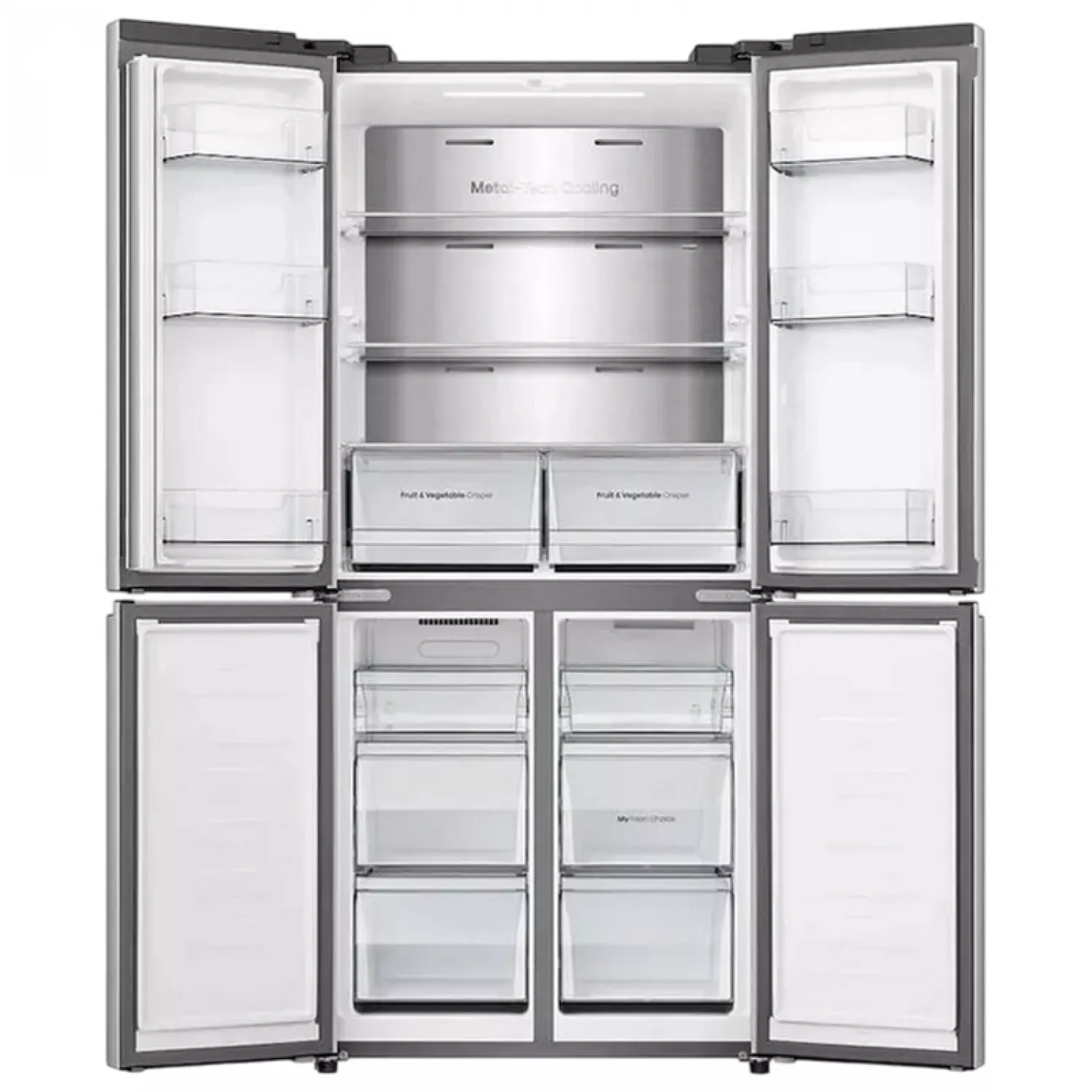Характеристики для Морозильник Hisense RQ5P470SALE, 483 л, Система охлаждения Metal-Tech, Многопоточный воздушный поток, Суперохлаждение, Система полного отключения инея, 178,5 см,