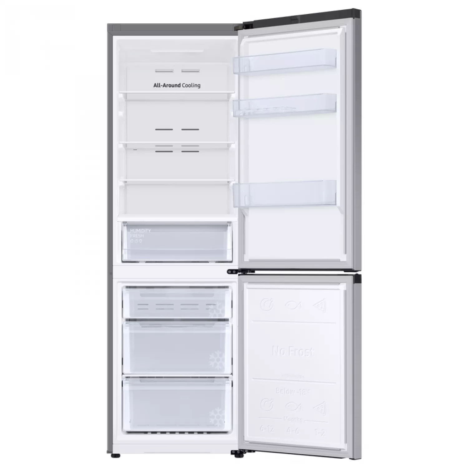 Система All Around Cooling обеспечивает равномерное охлаждение всего холодильника до одинаковой температуры, от угла до угла. Постоянная температура поддерживается за счет обдува холодным воздухом каждой полки. Таким образом, каждый продукт эффективно охлаждается, и продукты дольше остаются свежими.
