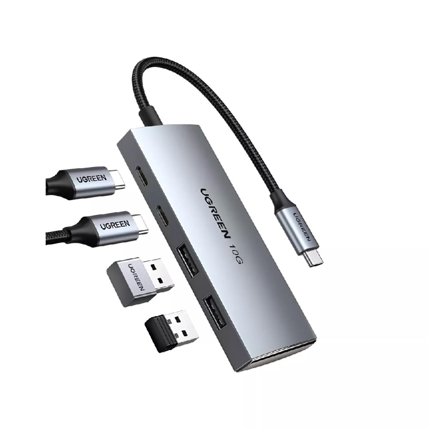 Док-станция ugreen hub 4in1 type-c 3.0 to 2*type-c 3.2 + 2*usb 3.1 cm480, silver