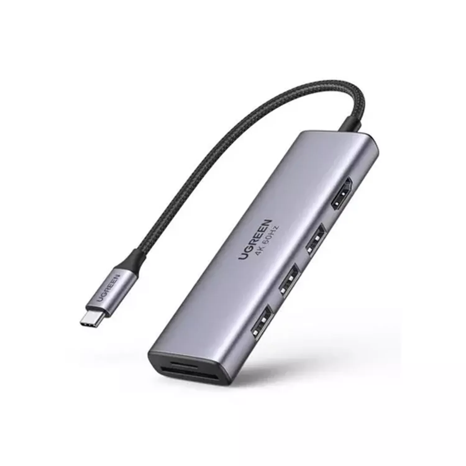 Док-станция ugreen hub 6in1 type-c to hdmi 4k@30hz + 3xusb3.0 + tf/sd cm511, space gray