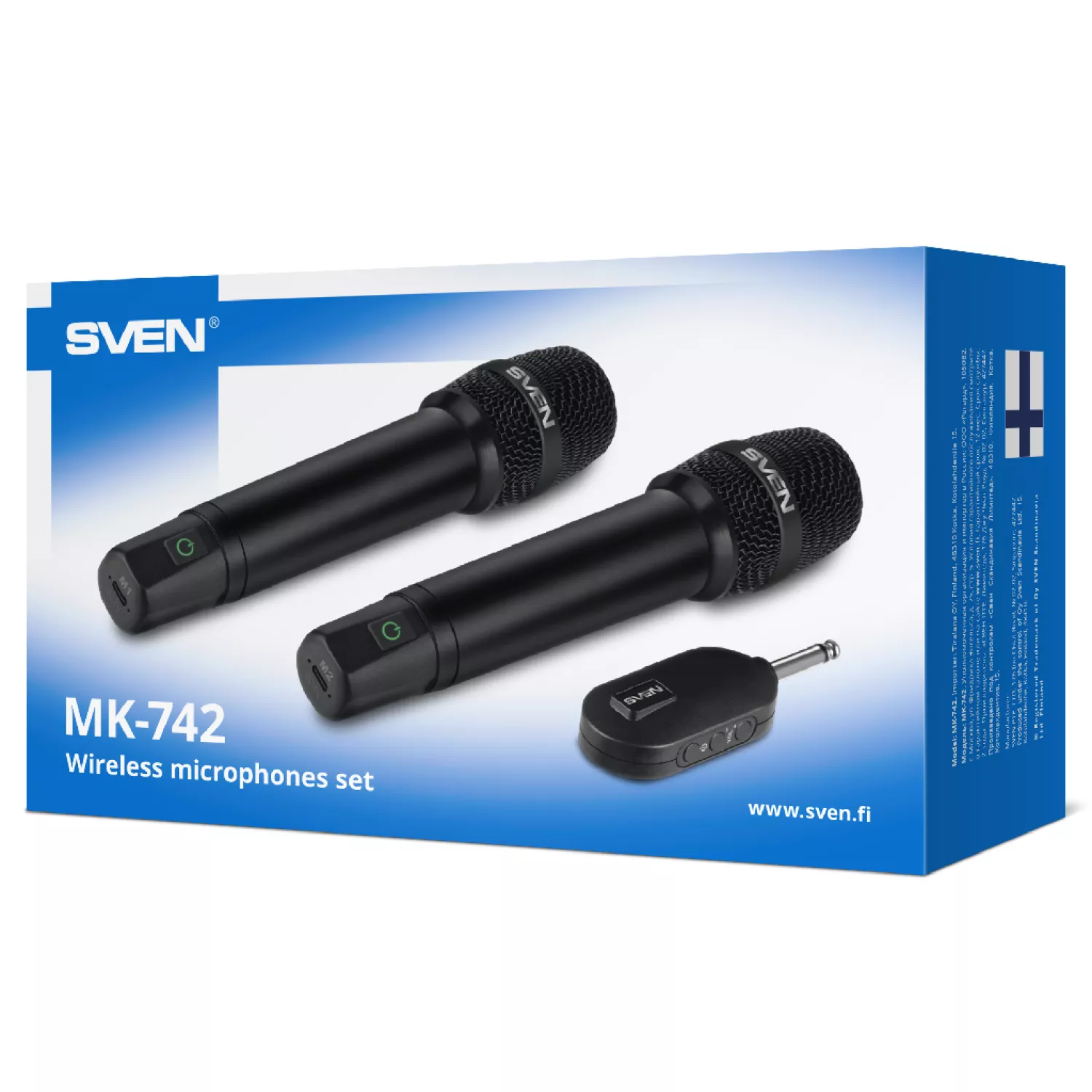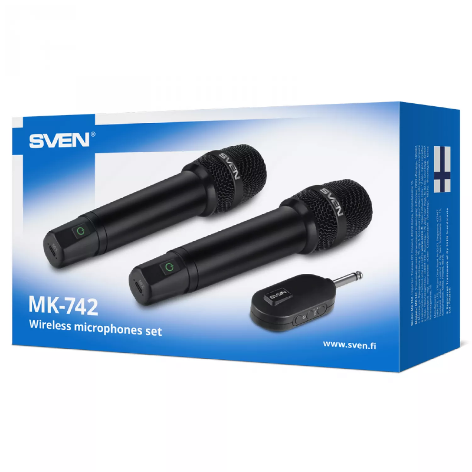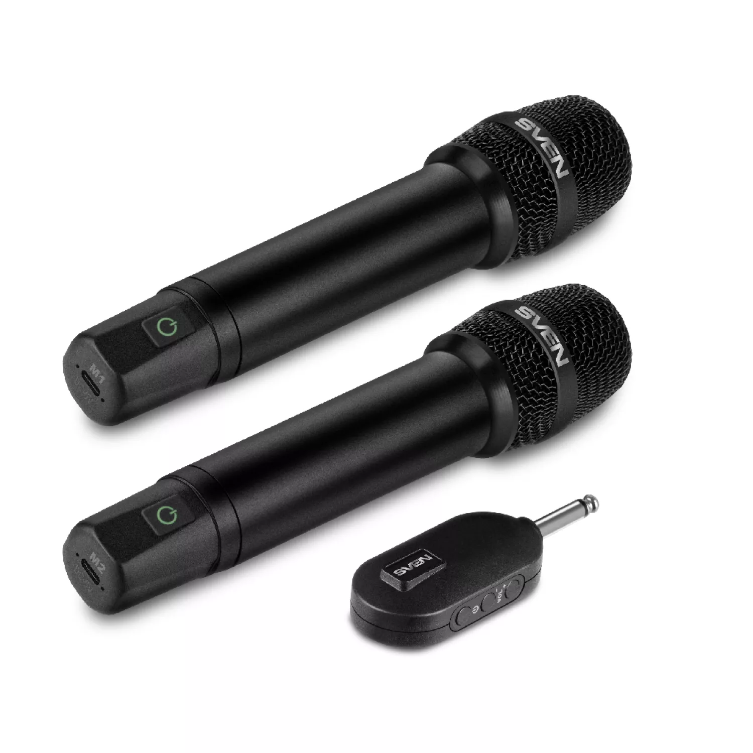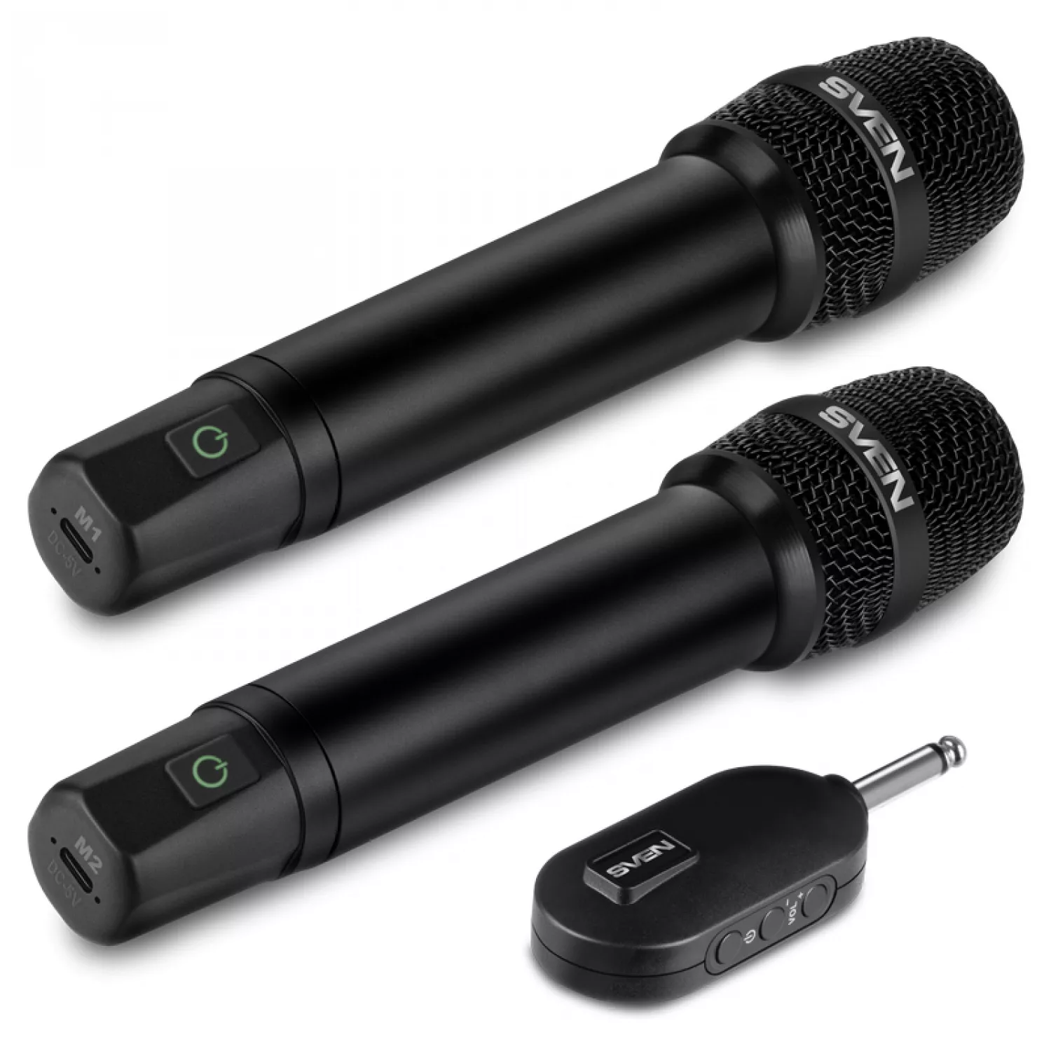 Микрофон sven mk-742, two wireless dynamic microphones, li-ion 180mah, 2.4ghz radio / 6.3 mm plug, up to 25 m distance, up to 12 hours, pop filter, black