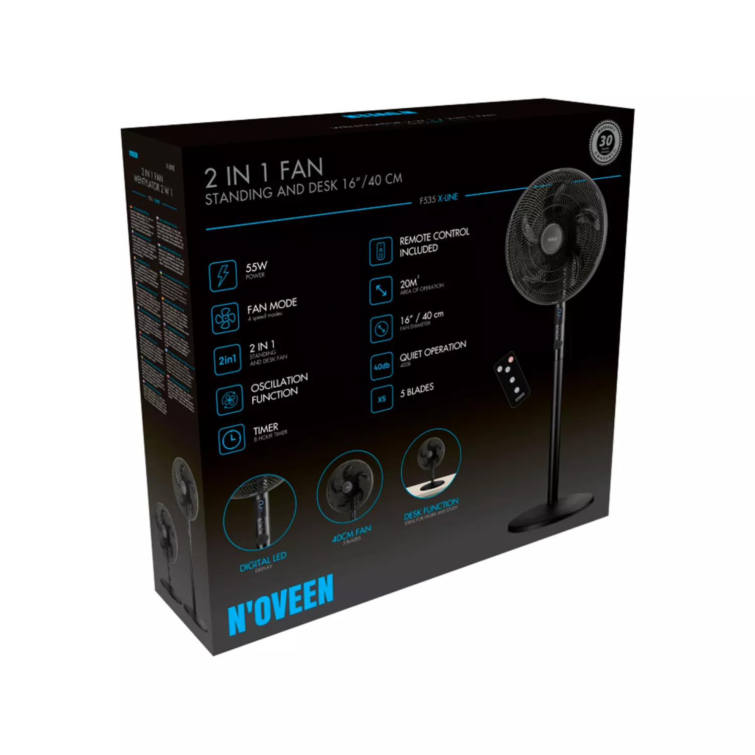 NOVEEN Standing Fan F535 2 in 1 standing and desk fan 16"/40cm, Black |