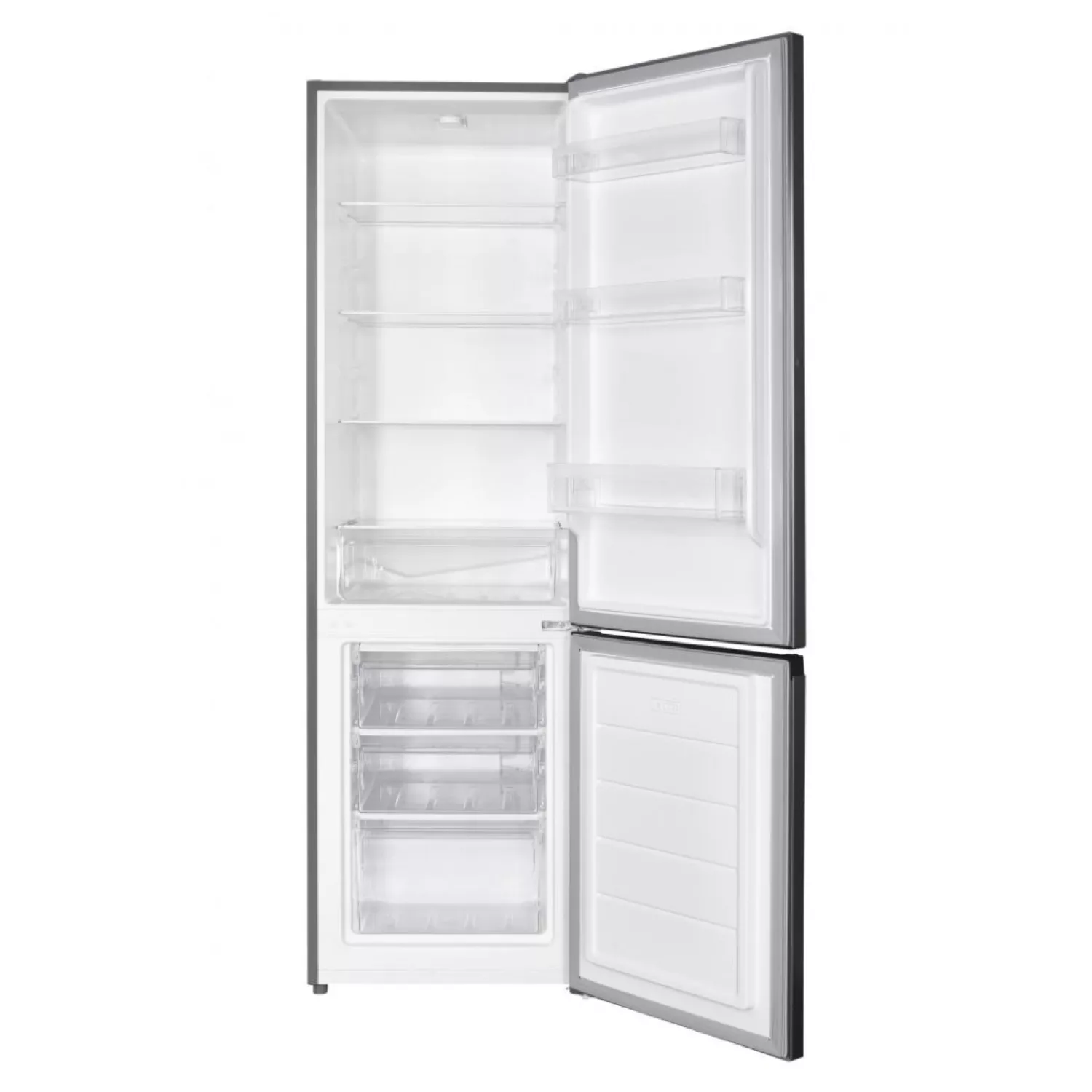 Двухкамерный холодильник объёмом 262 л с ручной разморозкой, электронным управлением и морозильной камерой снизу.