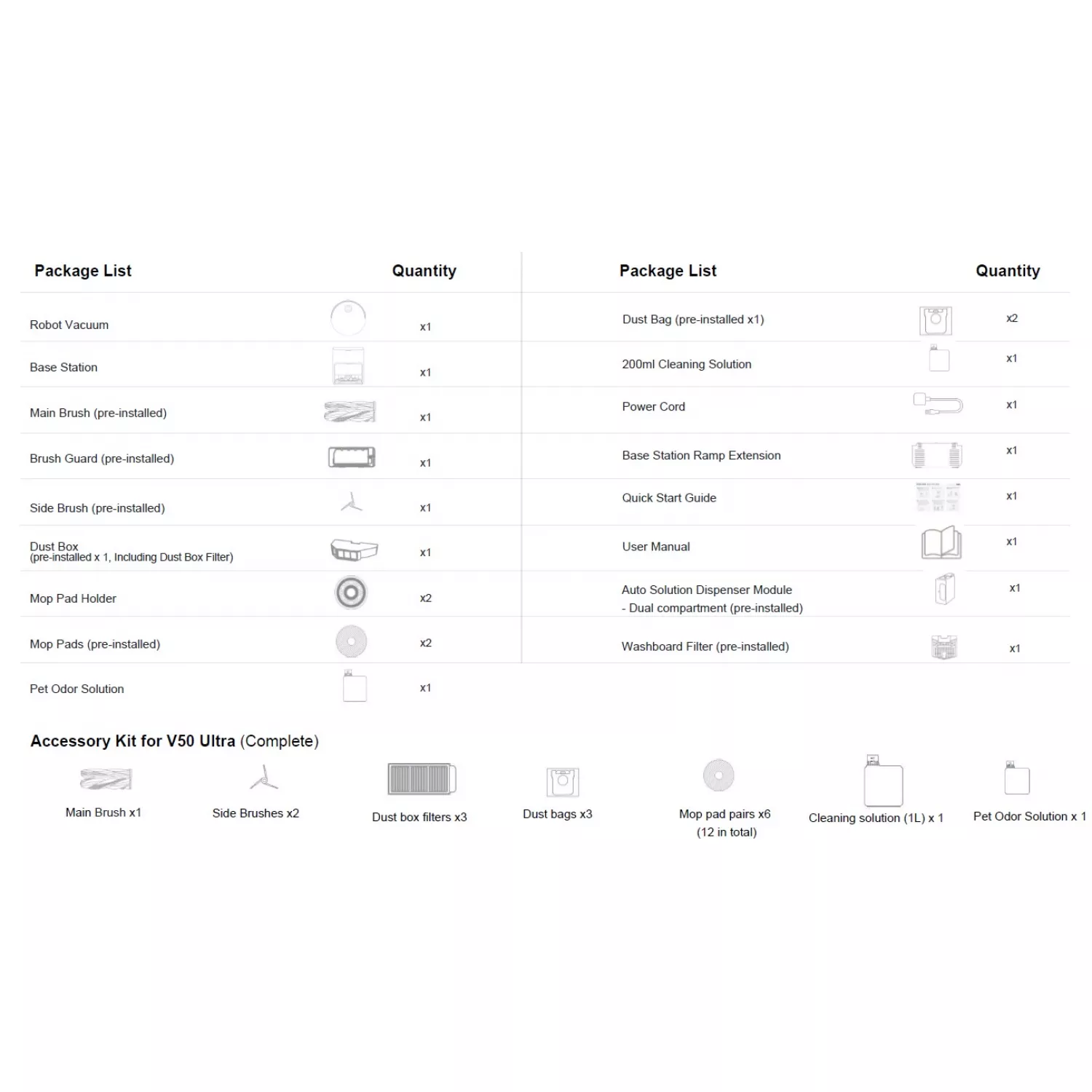 Характеристики для Робот-пылесос Dreame Vacuum Robot Cleaner Mova V50 Ultra Complete, White