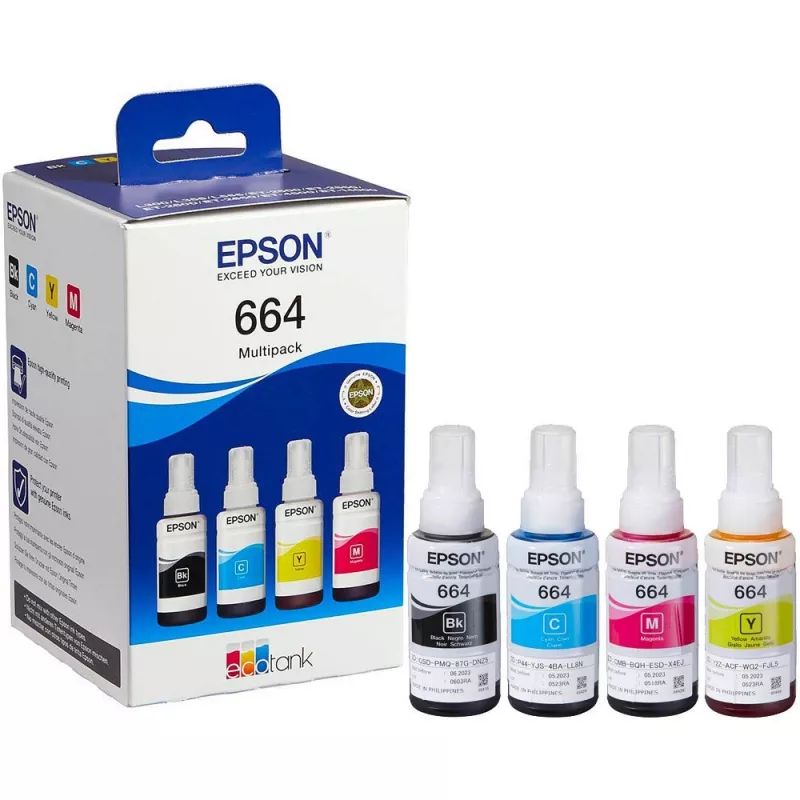 Epson 664 EcoTank 4-colour multipack (T6641/T6642/T6643/T6644), 280ml, for EcoTank L130/L100/ L110/ L120/ L121/ L132/ L1455/ L200/ L312 |