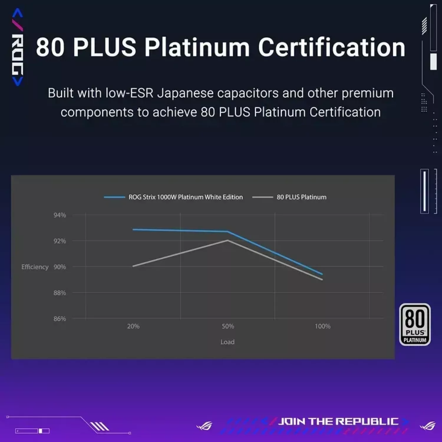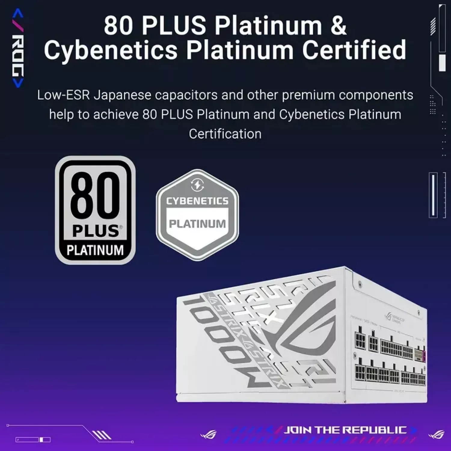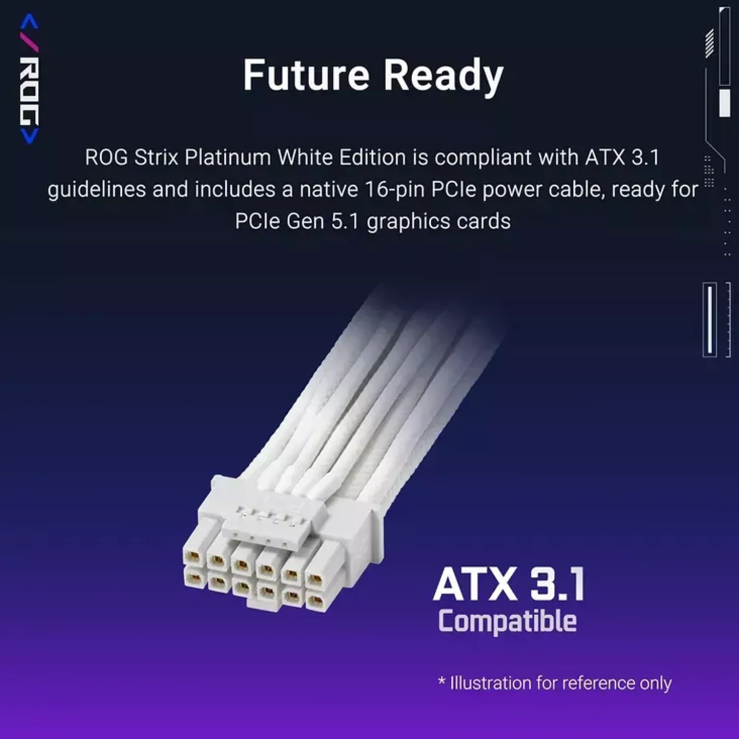 Характеристики для Блок питания ПК ASUS 1000W ATX Power supply ASUS ROG-STRIX-1000P-GAMING-WHITE, 1000W, 80 Plus Platinum, ATX 3.1, PCI-E Gen 5 Cable, ROG heatsinks, 135mm Axial-tech fan, dual ball fan bearings, 0dB technology, fully modular cables (sursa de alimentare/блок питания)