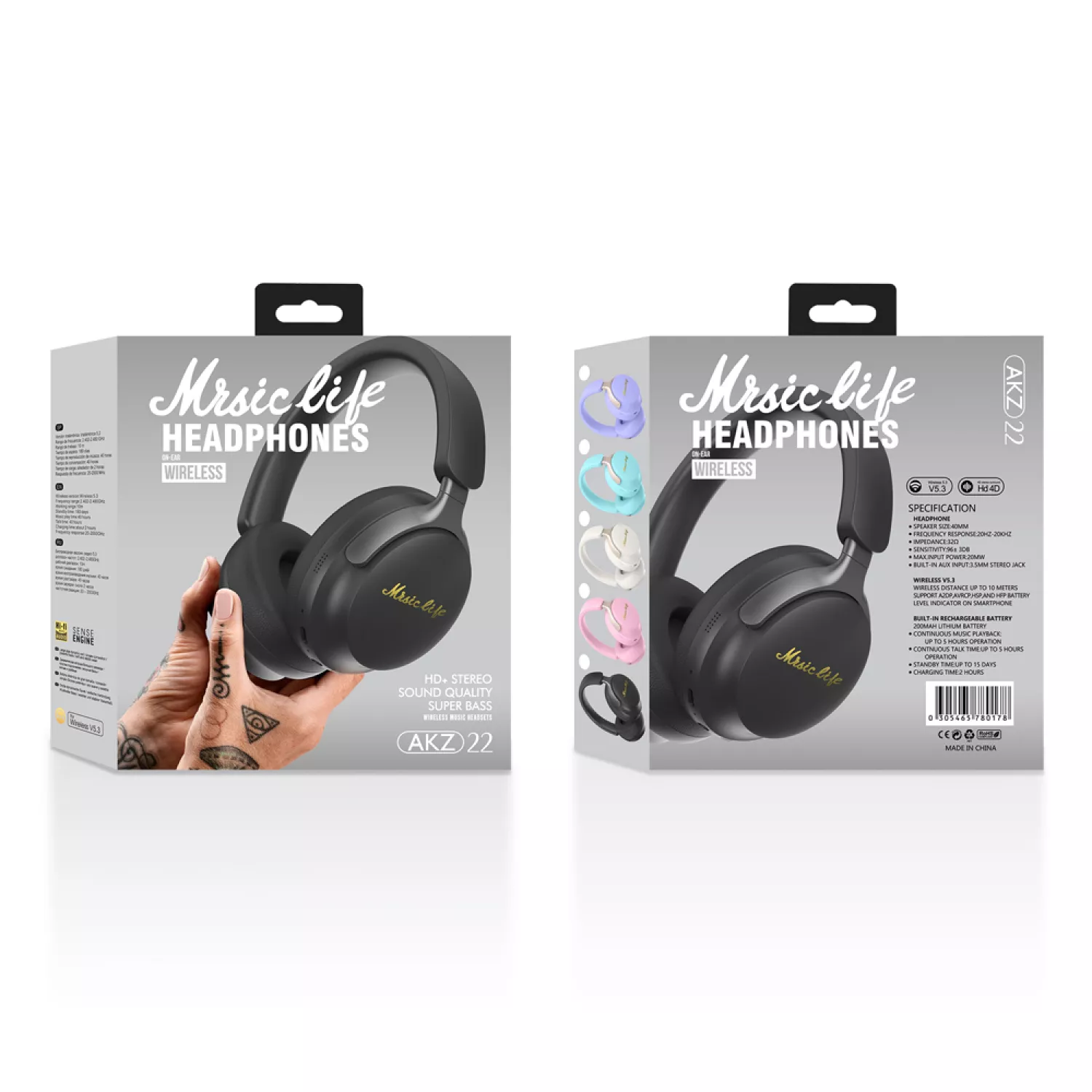 Musen Wireless Headphones over ear AKZ-22, Black |