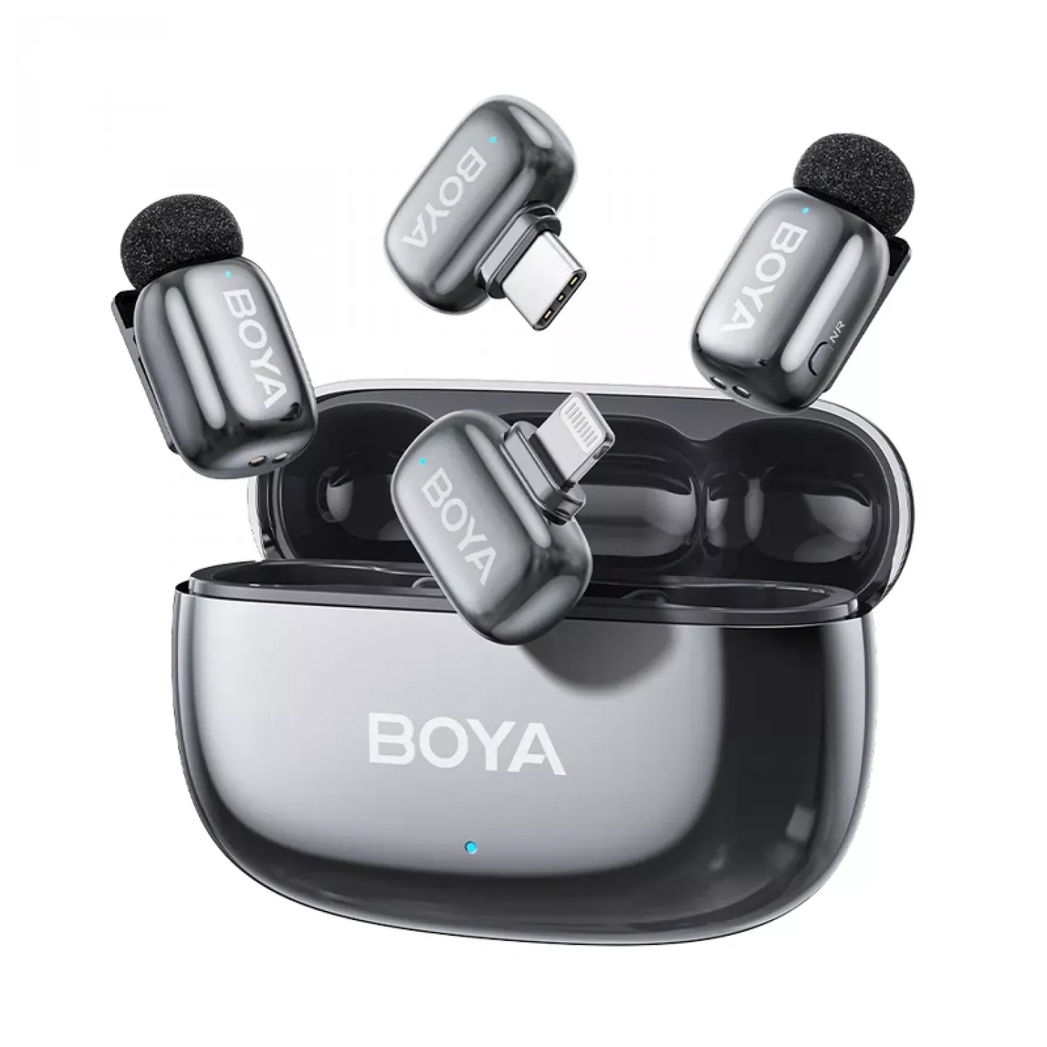 Microphone Wireless Boya Mini 2-01 Ultracompact (2 TX+ 2RX USB-C plug+ Lightning Plug + Charging case), Space Gray |