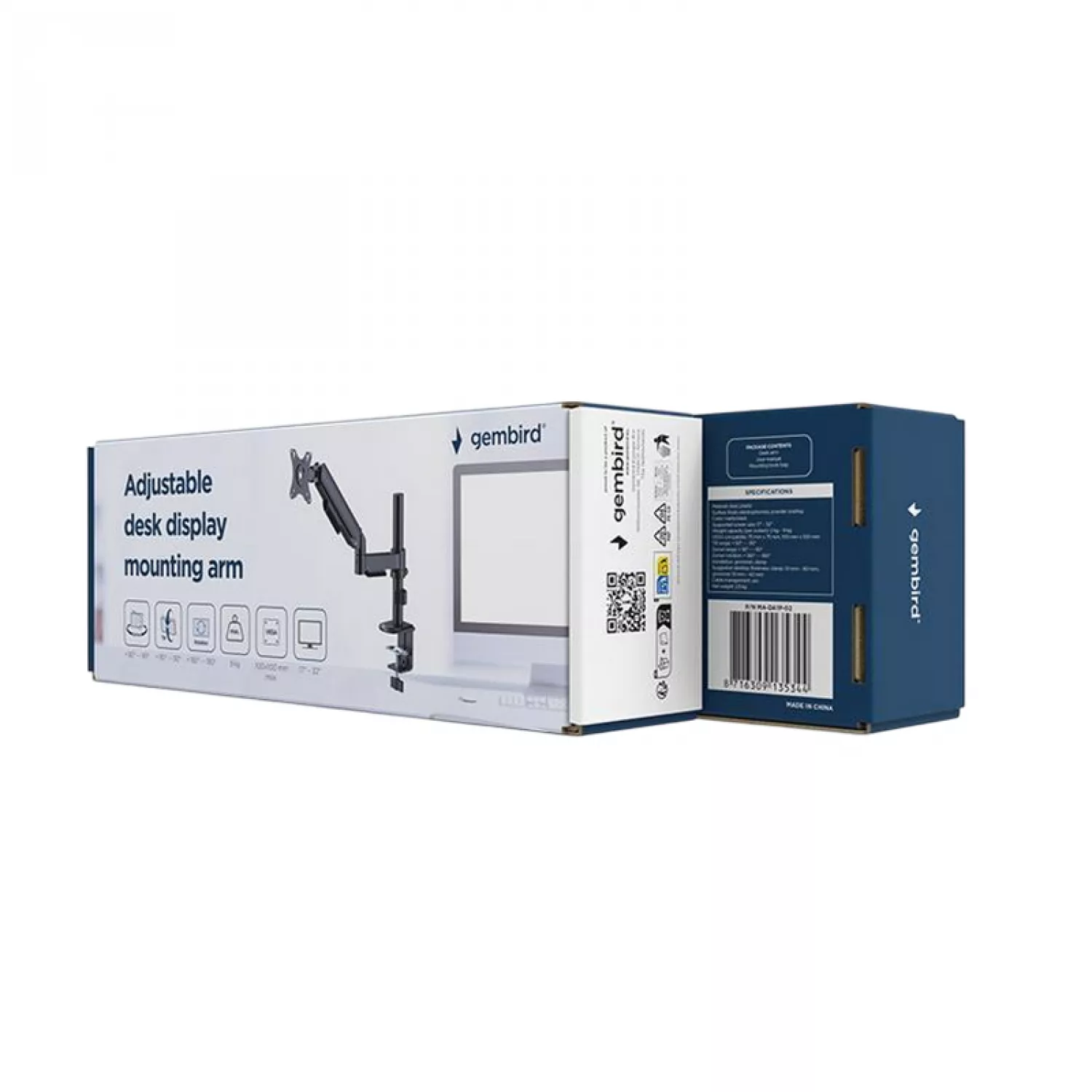 Разное gembird table/desk 1-display mounting "ma-da1p-02" gembird (rotate,tilt,swivel),17”-32”,up to 9 kg,vesa:75x75,100x100