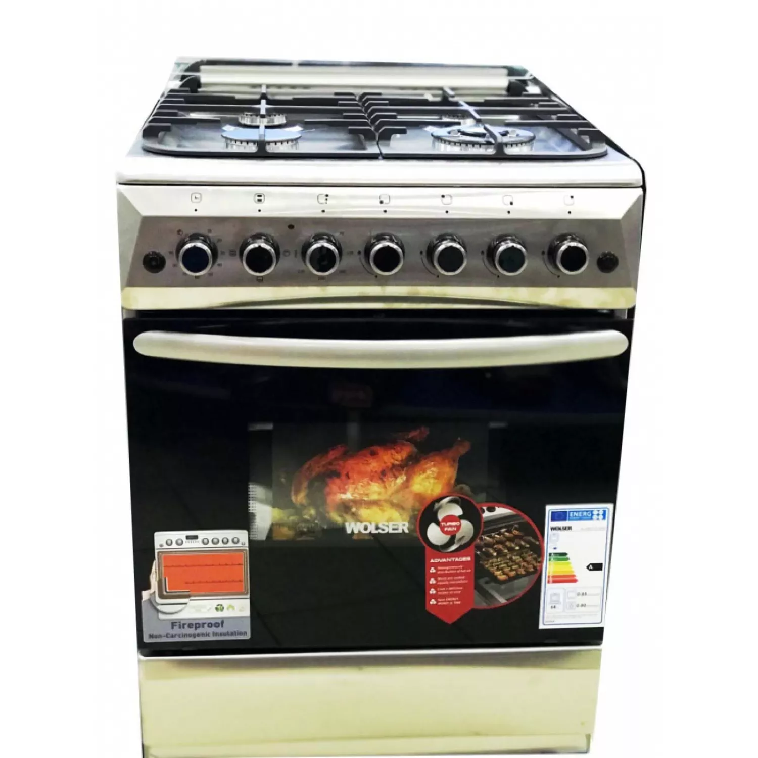 Комбинированная плита wolser wl-60602 ige turbo, 4 конфорки, электроподжиг, таймер, 60 см, нержавеющая сталь, черный