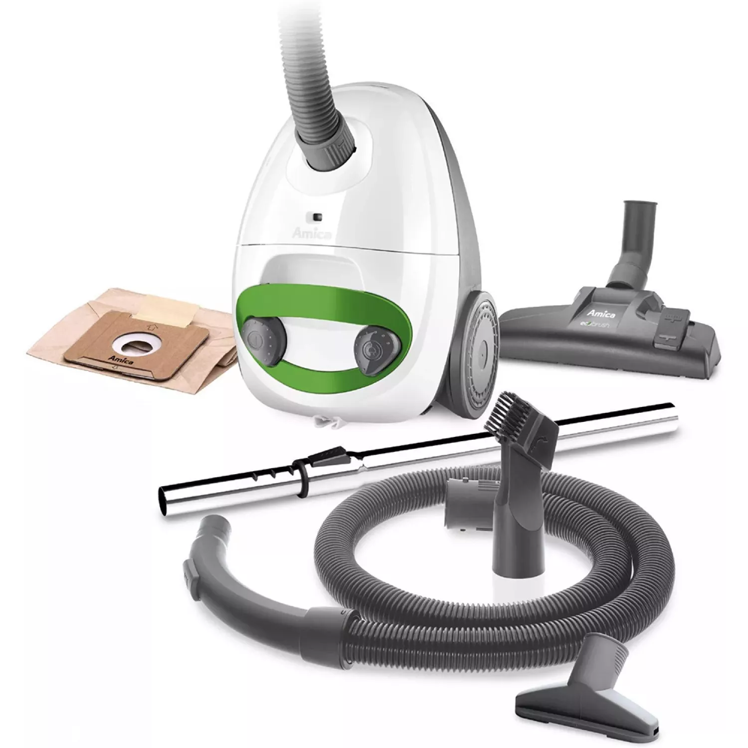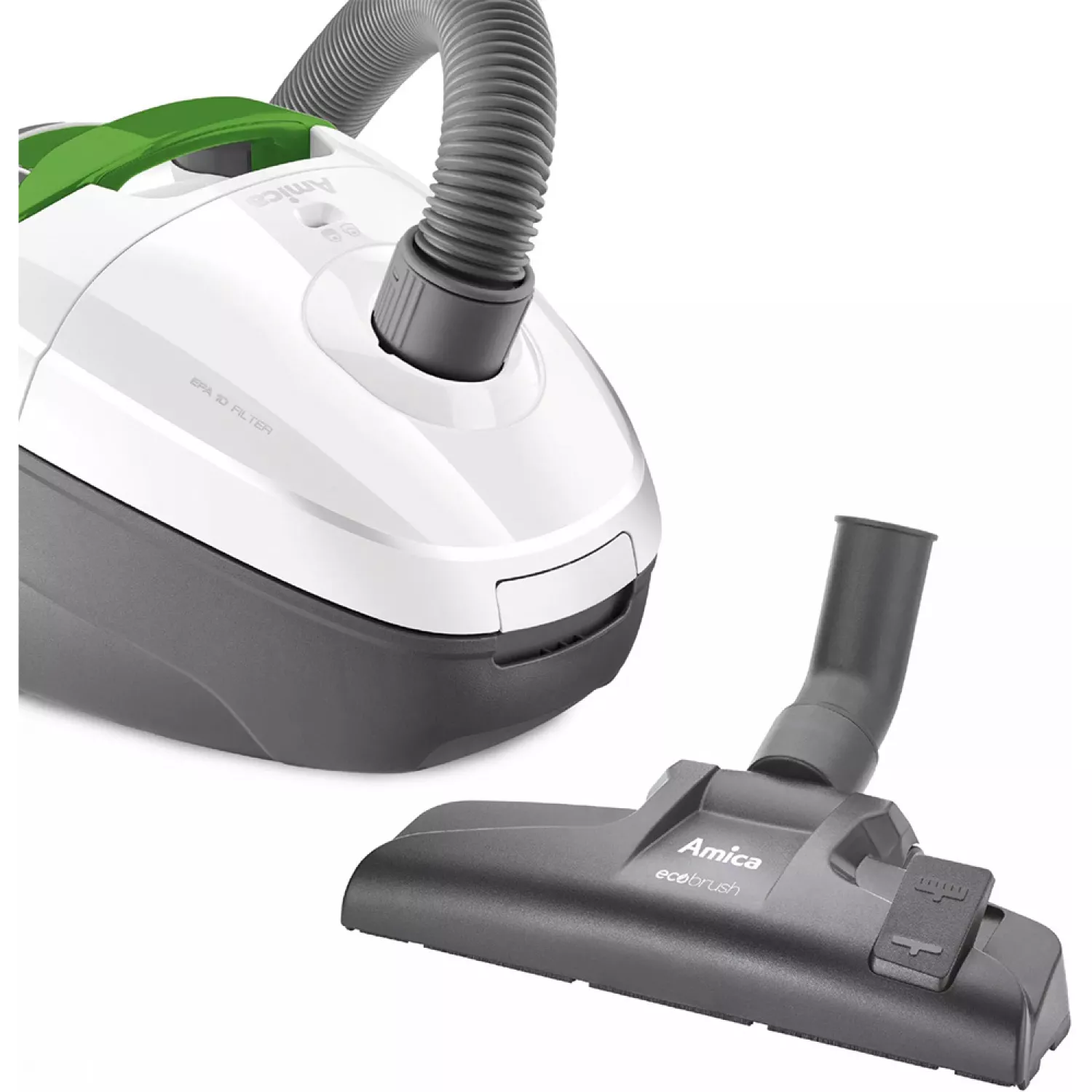 Характеристики для Пылесос AMICA Ora VM1034, 500 Вт, 1.5 л, HEPA 10, Белый, Серый, Зелёный