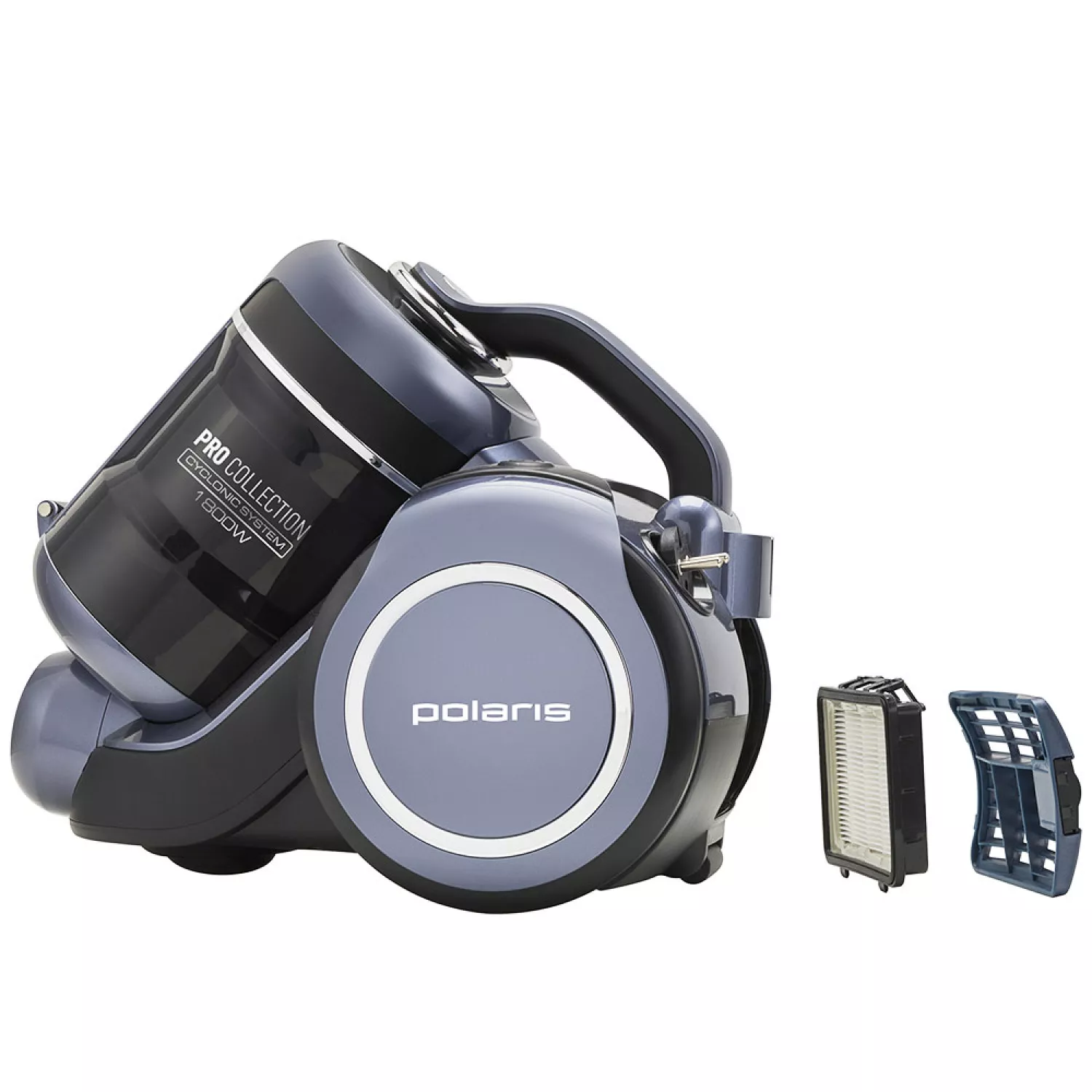 Пылесос с контейнером polaris pvc 1834 silent silver, 1800 вт, 1,7 л, 71 дб, hepa 12, серебристый