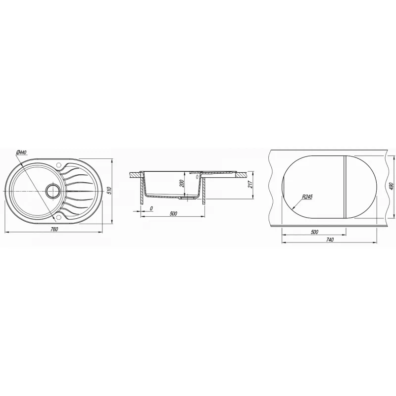 Характеристики для Мойка Dr.Gans Berta Белый, Гранитный композит, 760 х 510 х 217