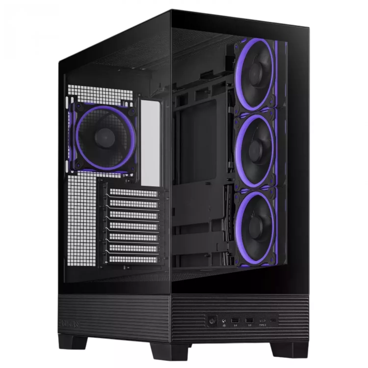 Передняя и боковая панели из закалённого стекла обеспечивают беспрепятственный обзор внутренних компонентов, позволяя продемонстрировать эстетику сборки.