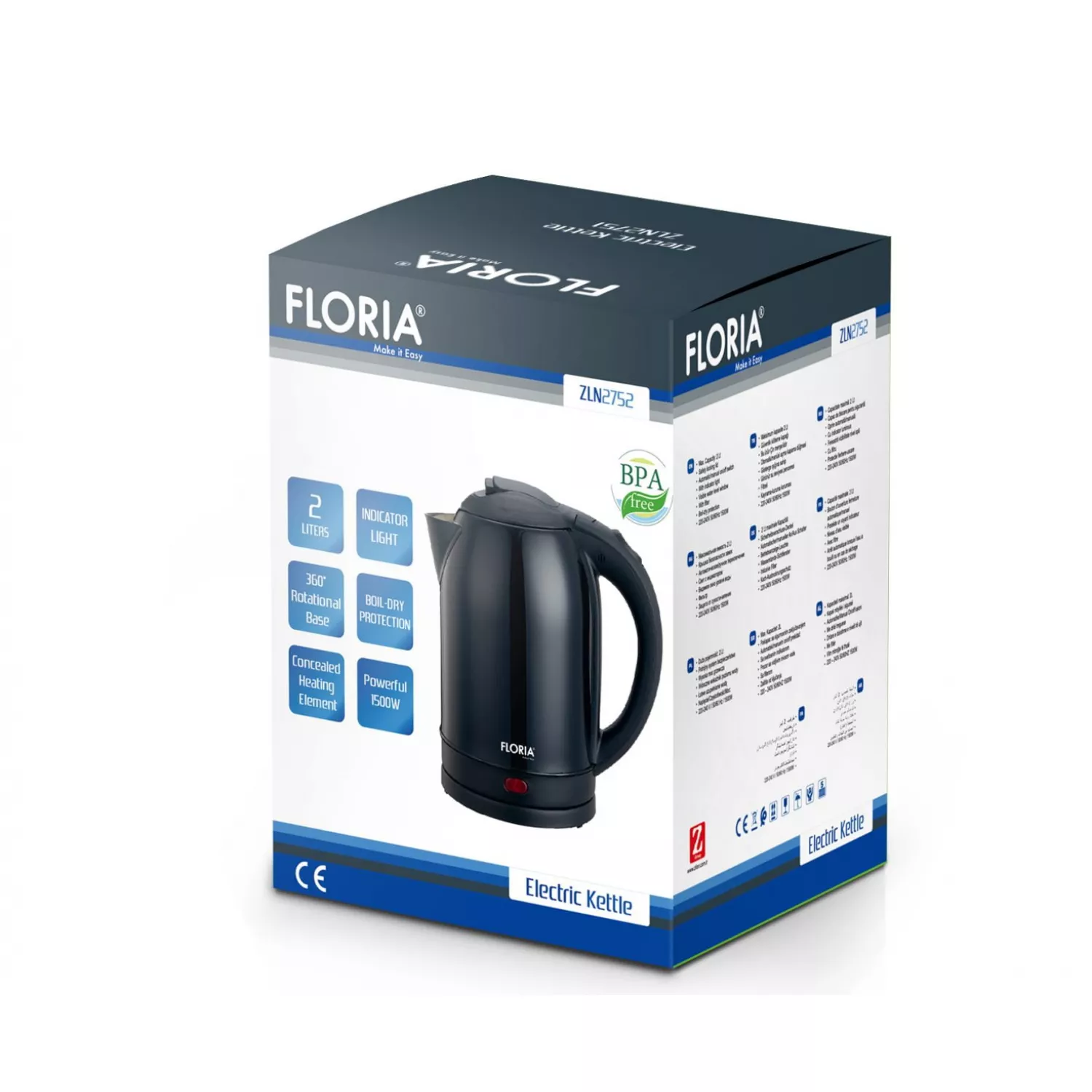 Характеристики для Электрочайник Zilan ZLN2752, 2 л, 1500 Вт, Пластик, Черный