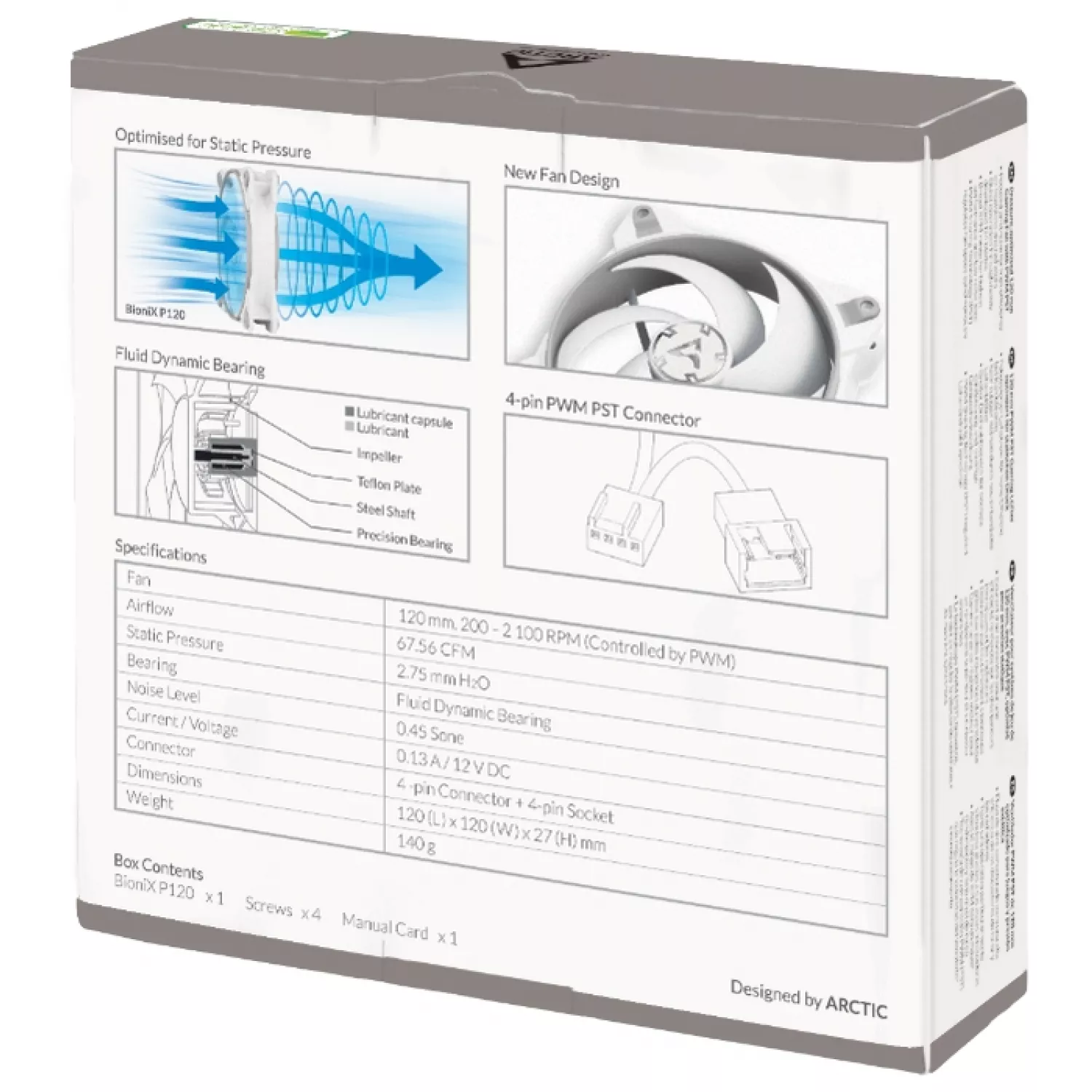 Характеристики для Вентилятор для корпуса ARCTIC BIONIX P120 PWM PST GREY/WHITE, 120x120x27 мм