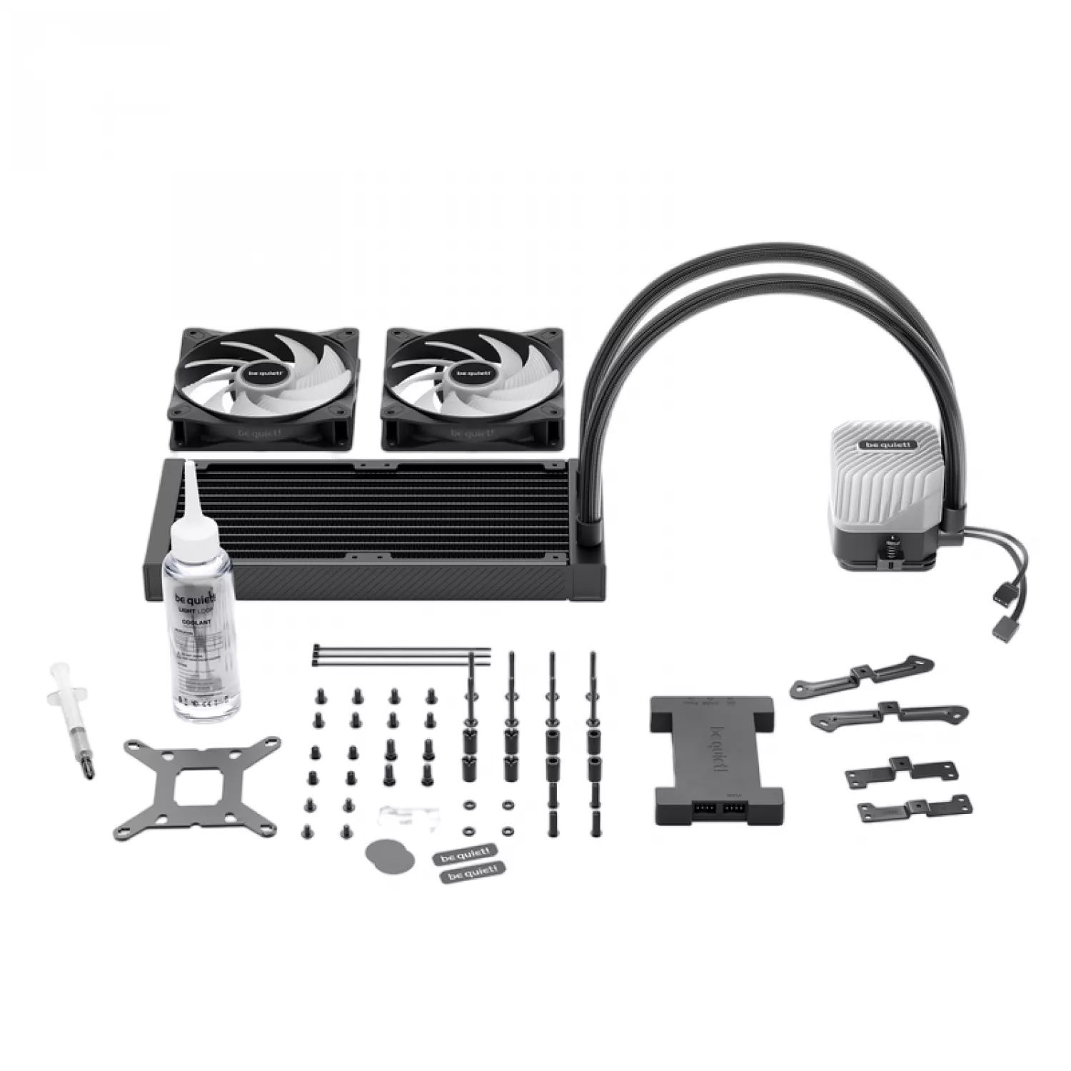 Кулер универсальный be quiet! aio liquid cooling be quiet! "light loop 240mm" (15.4-34.9db, 2x120mm argb fans, pwm, 2100rpm, argb block, argb-pwm-hub, 1200g.)