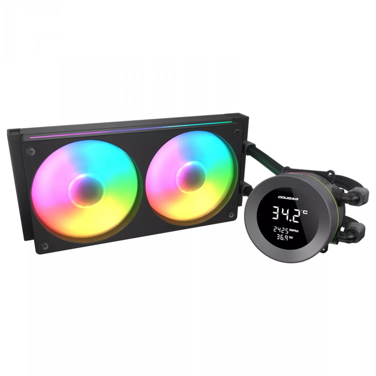 Кулер универсальный cougar aio liquid cooling cougar "poseidon vistek argb 240" (≤38 db(a), 78.2 cfm,2x120mm,argb,1800g) black