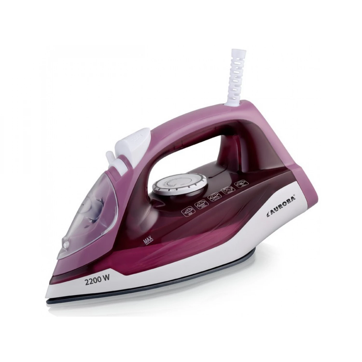 Утюг aurora au3435, 2200 вт, 35 г/мин, 100 г/мин, 100 мл, керамическая подошва, сиреневый, белый