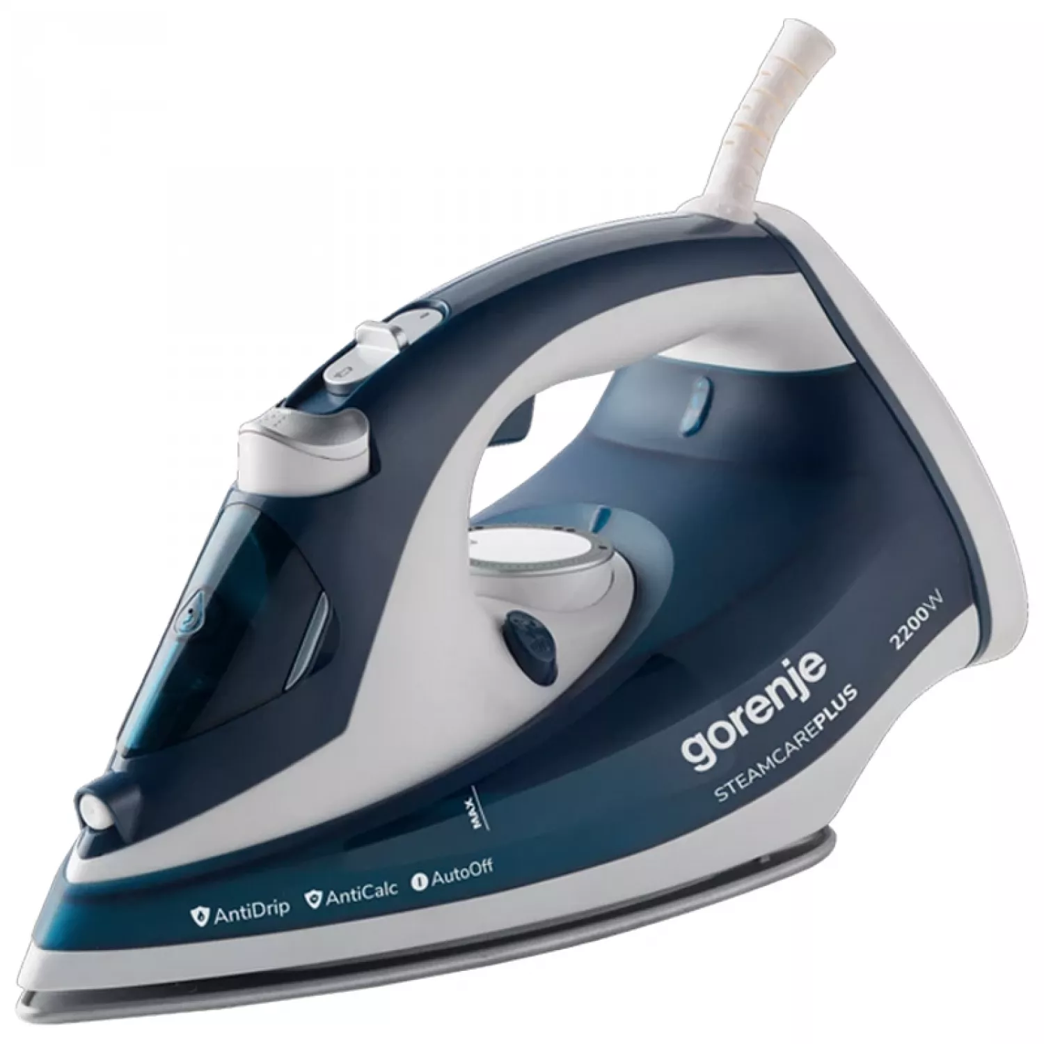 Утюг gorenje sih2200tqc, 2200 вт, 30 г/мин, 90 г/мин, 280 мл, керамическая подошва, синий, белый