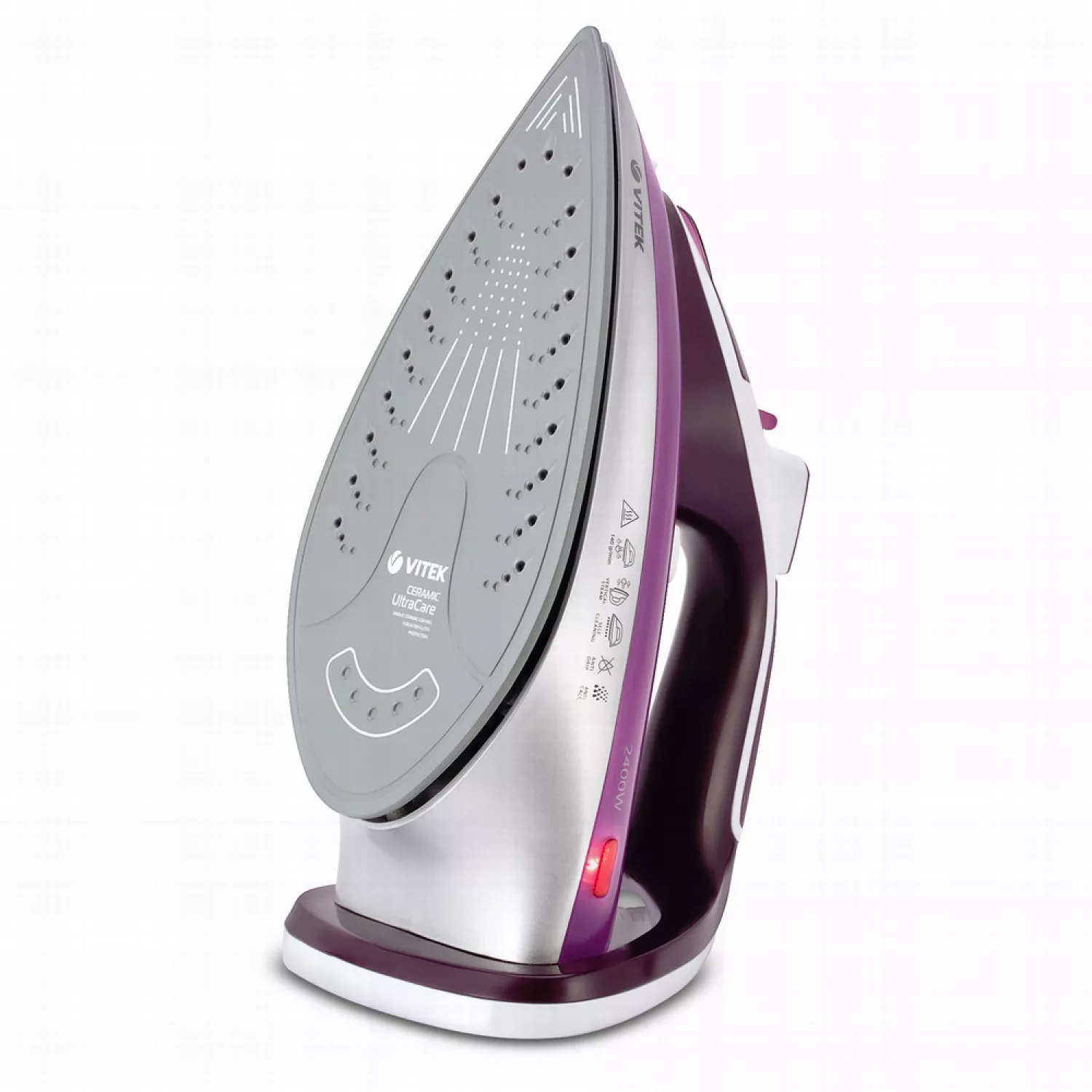 Утюг vitek vt-1246, 2400 вт, 40 г/мин, 140 г/мин, 350 мл, подошва ceramic ultracare, фиолетовый, белый