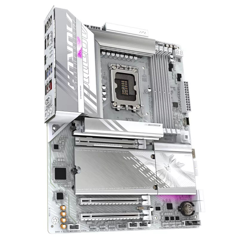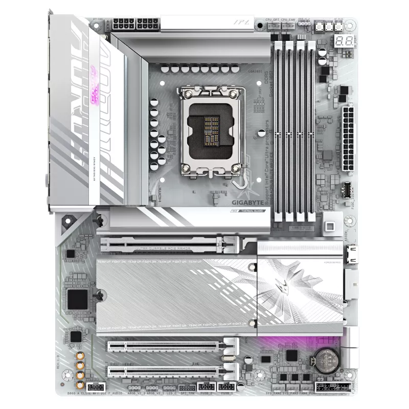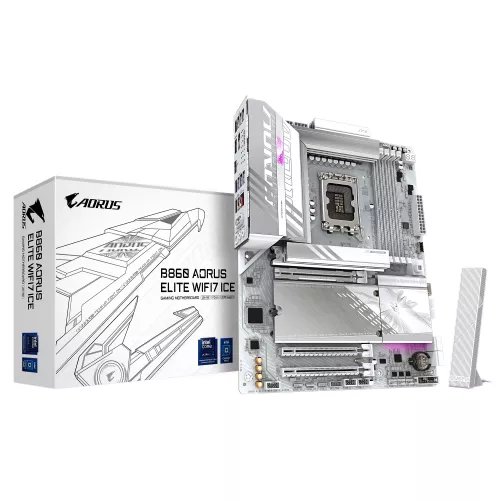 GIGABYTE B860 A ELITE WF7 ICE, Socket 1851, 17Phases, Intel® B860 (Ultra 2 Series CPU), CPU graphics, HDMI, DP, Dual 4xDDR5-9200, 3xPCIe X16 5.0, 4xSATA3, RAID, 3xM.2 5.0, Realtek 7.1/SPDIF, 2.5GbE LAN, WiFi7/BT, 1xUSB4 Type-C,1xUSB-C 3.2Gen2x2, 2xUS
